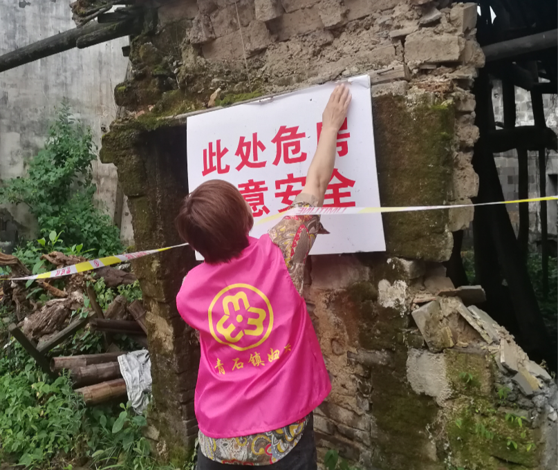 7月25日一早,衢州市柯城区石室村妇联执委左桃就和石室乡执法队队长陈宇一行就骑着电动车挨家挨户开始巡查。检查完石室村童家自然村地质灾害点正准备离开,“陈队!你看,前面毛叔的屋子后山好像有点塌方!”左桃指着村民毛某的泥房子说,两人急忙朝老毛的泥房走去,沿屋后山路上上下下、仔仔细细确认。由于连日下雨,老毛的房子后山上的泥土已被浸得过透,出现局部塌陷现象。“台风来了的话,毛叔一个人住在这里多危险啊!”左桃和陈队一商量,一边马上打电话到村里汇报情况,一边立刻找到老毛并劝导他赶快撤离。“幸好你们来和我说这事,我自己还不知道呢!现在是小塌方,等台风来了不知道会怎么样!谢谢小左和这位领导的及时提醒!”老毛马上用老年机电话联系住在市区的儿子,让儿子开车来接自己。等左桃和陈队返回时,两人的汗水已湿透了衣服。