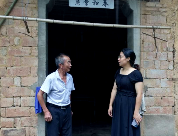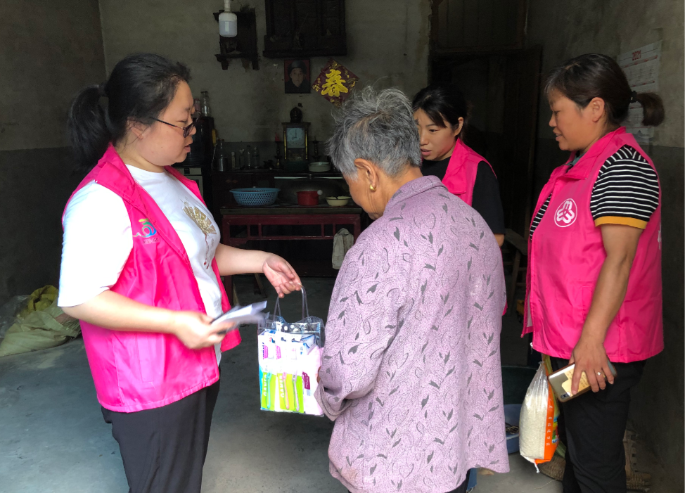 7月25日上午,开化县苏庄镇妇联执委上门走访慰问独居困难老人,送上防灾物品,并在廊桥等显眼处张贴温馨提示,劝导群众不要在廊桥凉亭休息,刮风下雨要留在家里不要外出采茶叶。