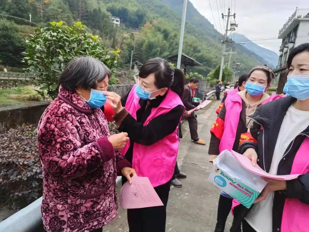 她们是母亲、是妻子、是女儿 而当疫情汹涌而来 她们拥有一个共同的身份—— 巾帼志愿者 为打赢疫情防控阻击战贡献力量 从全国巾帼文明岗 到“优秀女性”“最美家庭” 从各级妇联执委到基层妇女工作者 到处都有“她”的身影 鹿 城 为筑起疫情防护墙,连日来,鹿城区丰门街道金竹社区积极组织“夕阳红”“好大姐“巾帼”等志愿队,在辖区内以“土味方言”+“硬核喊话”的形式开展疫情防控知识宣传。 “老师伯,最近疫情形势严峻,你们要少聚集,聊天的时候更要戴好口罩!”在金竹社区,20余名巾帼志愿者们深入小区、商户、文化礼堂、公园广场等人员密集,特别是老年人聚集下棋聊天的场所,为大家发放口罩、消毒用品、宣传单等,并通过公共大喇叭、流动宣传车用土味方言提醒老年居民朋友们警惕疫情和加强自我防护,做好疫苗接种,辅导他们如何刷健康码、防疫码。 同时,来自“瓯江红”鹿城区社会组织党群服务中心的十多名巾帼志愿者,也分别前往市区帆影广场、庄头滨水公园等老年人聚集多的场所分发口罩等防疫物资,宣传日常防疫知识,手把手教老人如何在手机上打开温州防疫码等实用知识。 瓯海平安妈妈们积极协助老年人开展防疫工作,为老人量体温,安装防疫码,分发口罩。她们来到老人周转房,通过陪老人聊天、拉家常,了解老人们的身体心理健康状态,同时向老人们科普正确的防疫措施,提醒他们要保持安全距离、注意自身防护、减少聚集。 在景山街道会昌社区老人周转房,平安妈妈们考虑到部分老人子女不在身边,网购口罩困难,定期为周转房1200余名老人分发口罩。同时,她们还向老年人讲解了口罩的正确佩戴方法及使用频率和疫情防控的有关知识,并叮嘱他们少聚集,少出门,出门一定佩戴口罩。老人们领到口罩后都非常高兴,并表示会完全配合街道和社区的疫情防控工作,如有需要,他们也要投入到疫情防控当中。 乐 清 乐清市妇联团体会员——乐清市爱心话聊协会为老年群体推出“隔空传递爱”服务,将平时走访改为电话关爱,通过电话动员离退休人员参加疫苗接种,宣传防疫常识,倡导少出门、不聚集。组建“小喇叭”疫情防控巾帼宣传队、巾帼腰鼓宣传队等走村入户开展防疫知识宣传,以方言《防疫顺口溜》等通俗易懂的方式,通过录制方言广播、视频等方式,“线上+线下”同步播出,让更多老年人提高防疫意识,绷紧防控之弦。依托12338妇女维权热线、“我爱我家”心理咨询倾听热线,主动介入为老年群体开展心理辅导、在线维权等关爱服务,做好针对性人文关怀,为老年人筑起坚固心理防线。 疫情 防控 此外,巾帼志愿者们还为低保老年人送去“防疫礼包”,帮助老年人接种疫苗,安装温州防疫码。 瑞 安 瑞安市妇联发动各级妇联组织切实加大服务老人防疫力度。“瑞城蕙姐”巾帼志愿者们耐心引导老人正确戴口罩,使用温州防疫码,同时通过加大宣传力度、提供温馨服务,推进老人免费接种疫苗工作,让老人们多一份安心与温暖。 永 嘉 永嘉县金花联合妇联组织志愿者和社工到县迦得养老院,为住在这里的老人们宣传防疫知识,助力保障他们在疫情防控期间的安全,同时为老人理发、量血压,叮嘱老人要注意自身健康。 文 成 文成县妇联干部执委们认真排查老年群体疫苗加强针接种工情况并做好各疫苗接种点的服务工作,排摸尚未接种疫苗的老人群体,并劝导他们尽快接种应接尽接。志愿者们在各疫苗接种点积极投入引导分流、解答疑问、秩序维持、扶送行动不便老人、留观引导等工作中。利用各种形式向老年群体宣传解读疫情防控政策,劝导非必要不外出,出门戴口罩、少聚集,并引导老年群体参与卡口封控、流调溯源、核酸采样等各个环节,熟悉疫情应急程序。鹤城大姐志愿服务队在志愿服务点自备血压计,为有需求的老人免费量血压,为老人们提供贴心服务。 苍 南 苍南县各级妇联执委、平安妈妈、芳姐常态化进村入户,为老人分发口罩、讲解防疫知识,仔细排摸登记疫苗接种情况,动员老人积极接种。遇到行动不便的老人,主动帮忙排队做核酸检测,耐心指导戴好口罩。遇到聚集的老人,就地普及防疫知识,劝导老人不串门不聚集不参与红白喜事,加强自身保护。 龙 港 龙港市巾帼志愿者们组建港姐志愿者服务队,上门接送腿脚不便的老人至疫苗接种点接种疫苗,并为老人公寓等老人集聚点开展疫情防控相关知识宣讲。除了倡导一些基础的疫情防控知识,巾帼志愿者们还走进柳江社区、流浦社区、新渡社区等地,开展老年群体特别关爱行动,向老人们发放了口罩、免洗消毒洗手液、酒精喷洒消毒剂等防疫物资,一遍又一遍地教老人们如何正确操作使用“温州防疫码”“支付宝内健康码、行程码”等手机应用,老人们学得特别认真,个个笑容满面,把志愿者们当成了自己的孩子,还唠起了家常,一片充满幸福、欢笑的和谐景象。 此外,龙港市妇联还开展“将课堂宣传延展到家庭”活动,要求学生给家里老人们上一节防疫知识小课堂,实现防疫宣传以“小”带“老”、温情传递。