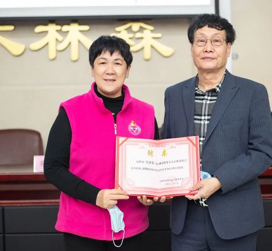 会上,阳光太太志愿者协会会长林丽娜为吴泽荣、邱萌芬颁发阳光太太志愿者协会艺术顾问聘书。今后,艺术顾问将带领阳光太太志愿者协会强化文艺志愿队伍建设,推进文艺志愿活动制度化、常态化发展。