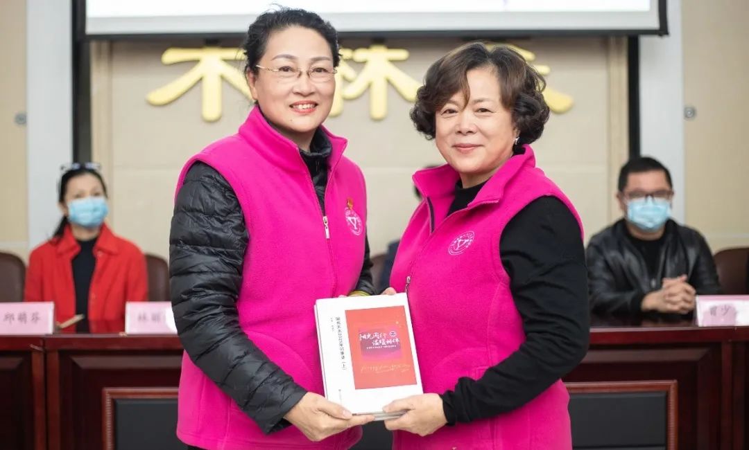 阳光太太志愿者协会副秘书长周建萍向协会捐赠其编写的《阳光同行 温暖相伴》一书。该书以文图并茂地展示了2021年阳光太太志愿服务工作成效。