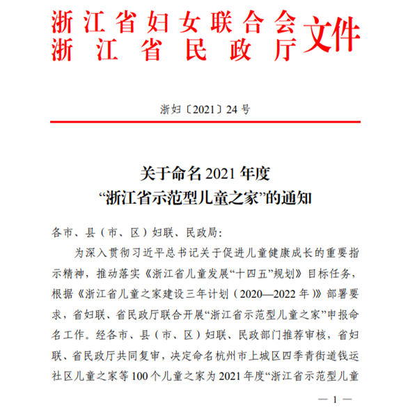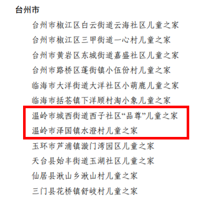 浙江省温岭市妇联2015年起推进村级儿童之家建设。截至目前,全市已建成村居(社区)儿童之家654家,覆盖率达97.76%,成功创建省级示范型儿童之家3家、台州市示范型儿童之家10家、温岭市示范型儿童之家40家。 近日,2021年度“浙江省示范型儿童之家”名单公布,其中就有温岭市城西街道西子社区“品尊”儿童之家和泽国镇水澄村儿童之家。 西子社区“品尊”儿童之家 西子社区“品尊”儿童之家室内面积约300㎡,设有阅读区、童玩区、学习区、活动区等功能区域,购置了500余册儿童图书和滑梯、棋类等一批儿童文体用品丰满阵地功能,全力提升儿童学习、活动的美好体验感。 西子社区儿童之家坚持开放、共享的服务理念,积极引入“参与式”活动模式,创建了“小手拉大手”志愿服务、暑期儿童关爱服务、“红色”系列家庭家教服务、“童心飞扬 快乐成长”亲子活动等特色品牌活动。截至目前,共开展各类活动140余场,受益儿童3000余人次。 开展“小手拉大手”志愿服务,召集西子社区内6-16岁儿童家庭成立亲子志愿者队伍,以“垃圾分类”“公勺公筷”“绿色出行”等文明风尚为主题多元化开展新时代文明实践活动。社区志愿者与家长、幼儿手拉手,纷纷走进社区、走上街头,为共同创建文明城市贡献自己的一份力量。 暑期儿童关爱服务,给每一名儿童传递城西温度。开展“英语绘本”“时间启蒙和钟表艺术”“小小银行家”“用钱买到的时钟”美术手工、“儿童保护”防性侵教育等活动,多方面教学体验,寓教于乐,因地制宜地绽放教学,让流动儿童、留守儿童度过一个“安全、快乐、健康”的暑期。 开展“红色”系列家庭家教服务。举行“开笔启蒙 利润人生”启蒙礼活动,弘扬优秀国学传统文化。开展“童心向党,薪火相传”红色之旅6.1游园会活动及“学党史 跟党走 传家风”红色故事汇活动,通过党史大冲关、打卡红色印记、亲子家庭共读红色绘本、讲述红色故事等形式,促进家庭形成良好的家风,让红色基因根植儿童心灵。 “童心飞扬 快乐成长”亲子活动。根据社区不同年龄段儿童的兴趣爱好,开展手工DIY、绘画、积木搭建等亲子活动。