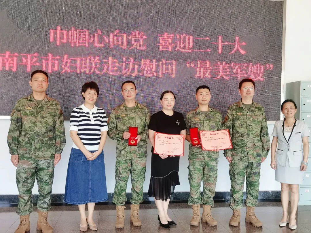为深入贯彻落实习近平总书记关于做好双拥工作、加强军政军民团结的重要论述精神,结合“巾帼心向党 喜迎二十大”群众性主题宣传教育活动,在中国人民解放军建军95周年之际,福建南平各级妇联以“强国复兴有我”为主题,扎实推进“双拥”工作开展,大力弘扬拥军爱民优良传统,积极践行社会主义核心价值观,持续激励全市广大妇女、家庭支持军队和国防建设,以实际行动迎接党的二十大胜利召开。 小编带大家一起看看都有哪些精彩“双拥”活动 南平市本级 南平市妇联面向全市驻军部队和南平籍军人妻子广泛开展寻找2022年南平市“最美军嫂”活动,评选揭晓了南平市“最美军嫂”20名。 在勤保障部队第九〇七医院慰问最美军嫂王蓉霞及王静家属 在南平市第一医院血透室慰问最美军嫂陈芳 8月1日,南平市妇联党组成员、副主席李治带队走访慰问在延南平市“最美军嫂”,为她们送奖进部队、进单位,现场颁发了南平市“最美军嫂”奖章、证书,并送上由市妇联和爱心企业武夷星茶业有限公司准备的暖心慰问品。延平妇联党组书记、主席吴艳平一同参加慰问。 在勤保障部队第九〇七医院和南平市第一医院,李治一行分别与部队官兵、最美军嫂及其所在单位领导座谈,详细了解了最美军嫂家庭情况,听取了她们的拥军故事分享。李治勉励“最美军嫂”珍惜荣誉,守好家庭大后方,积极支持亲人在部队安心服役,为国防事业做出新的贡献;希望“最美军嫂”所在单位,立足实际,加大对军属的关心关爱力度,同时号召全市广大妇女和家庭以“最美军嫂”为榜样,情系国防、爱国拥军,以实际行动支持人民军队建设,为助力新时代富美新南平建设贡献巾帼力量,并向驻军部队官兵送上美好的节日祝福。 邵武市 召开拥军优属“八一”慰问座谈会 为困难退役军人及现役军人家属赠送慰问物品 走访慰问驻邵部队官兵 7月28日,邵武市妇联联合当地人武部、双拥办、市委党校、残联和妇女拥军协会联合开展“八一”拥军优属活动,为退役军人、现役军人家属和驻地官兵送去党和政府的关怀及节日祝福。邵武市委常委、人武部政委葛富裕,市人武部部长朱毓洪一同参加活动。 武夷山市 7月27日,武夷山市妇联联合市委统战部、市工商联开展“八一”拥军优属慰问活动,组织爱心女企业家向空军场站部队赠送了生猪肉、熏鹅、茶叶等慰问物资,表达了浓浓的军民鱼水情。 建瓯市 7月31日,建瓯市妇联与市文体旅局联合举办“喜迎二十大 奋进新征程”2022年建瓯市“双拥”文艺主题暨致敬“火焰蓝”专场慰问演出。 顺昌县 7月29日,顺昌县妇联联合县人武部、双溪街道等单位走访慰问困难军属。慰问组一行与军属们进行了亲切交谈,详细询问她们当前的生活情况及困难需求。县妇联表示将充分发挥“联”的优势,深化“我为妇女群众办实事”实践活动,积极为困难军属办实事、解难题,努力为“最可爱的人”安心保家卫国解决后顾之忧。 光泽县 7月31日晚,光泽县妇联联合县文化体育和旅游局、县退役军人事务局、县文化馆等单位举办“庆祝建军95周年 喜迎党的二十大”双拥文化进军营文艺演出。 8月1日,光泽县妇联、退役军人事务局走访慰问了南平市“最美军嫂”徐芸,鼓励她发挥“最美军嫂”示范表率作用,继续当好“贤内助”,影响、带动更多的姐妹和家庭进一步增强爱国拥军意识。 7月29日,光泽县鸾凤乡党委政府、乡妇联先后走访慰问了消防大队及武警部队等单位。 松溪县 8月1日,松溪县妇联、团县委到县消防救援大队开展走访慰问活动,为全体消防员送去牛奶、加多宝等慰问物品,并与消防员们共同观看红色电影。