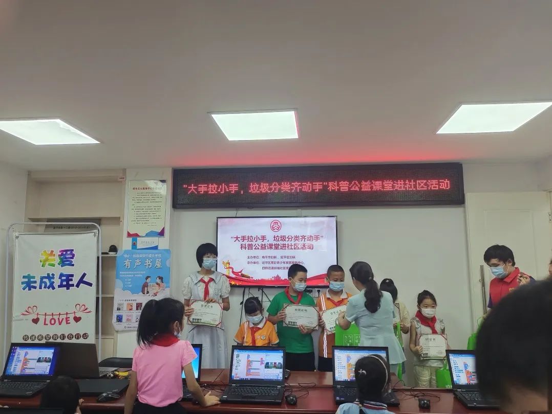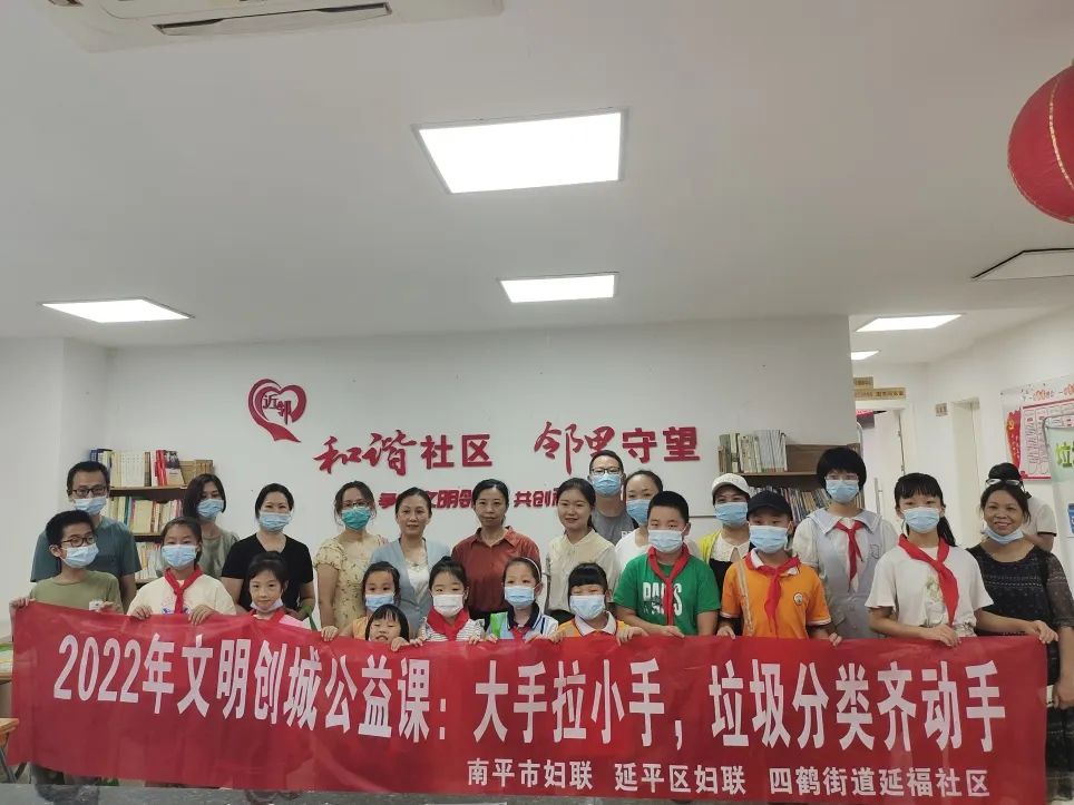 大手拉小手,垃圾分类齐动手,共建环保低碳绿色生活 近日,福建省南平市妇联、延平区妇联携手联动走进结对共建社区——延平区四鹤街道延福社区共同举办“大手拉小手,垃圾分类齐动手”公益科普活动。活动以“大手拉小手”方式,发挥家长示范引领作用,带动孩子养成垃圾分类绿色生活好习惯,有效加强未成年人思想道德建设,凝聚助力全国文明城市创建“家”力量。来自延福社区的十余对亲子参加了本次活动。 垃圾分类公益课堂上,巾帼志愿者通过生动有趣的案例,详细讲解了垃圾分类有关知识,让家长和孩子们深刻认识垃圾给人类生活带来的不良影响以及垃圾分类的积极意义,同时以互动问答和软件编程等形式,引导大家主动思考、积极参与…… 活动期间,主办单位为参与此次活动的孩子们颁发了“垃圾分类小能手”证书,并送上精美奖品,鼓励孩子们在今后的学习生活中牢固树立环保意识,争做垃圾分类宣传员、实践者。 活动当天,市县两级妇联和延福社区的巾帼志愿者们与参加活动的家长、孩子们一起在社区内开展垃圾分类志愿服务活动,以实际行动响应“垃圾分类从家出发”号召,为助力全国文明城市创建贡献力量。