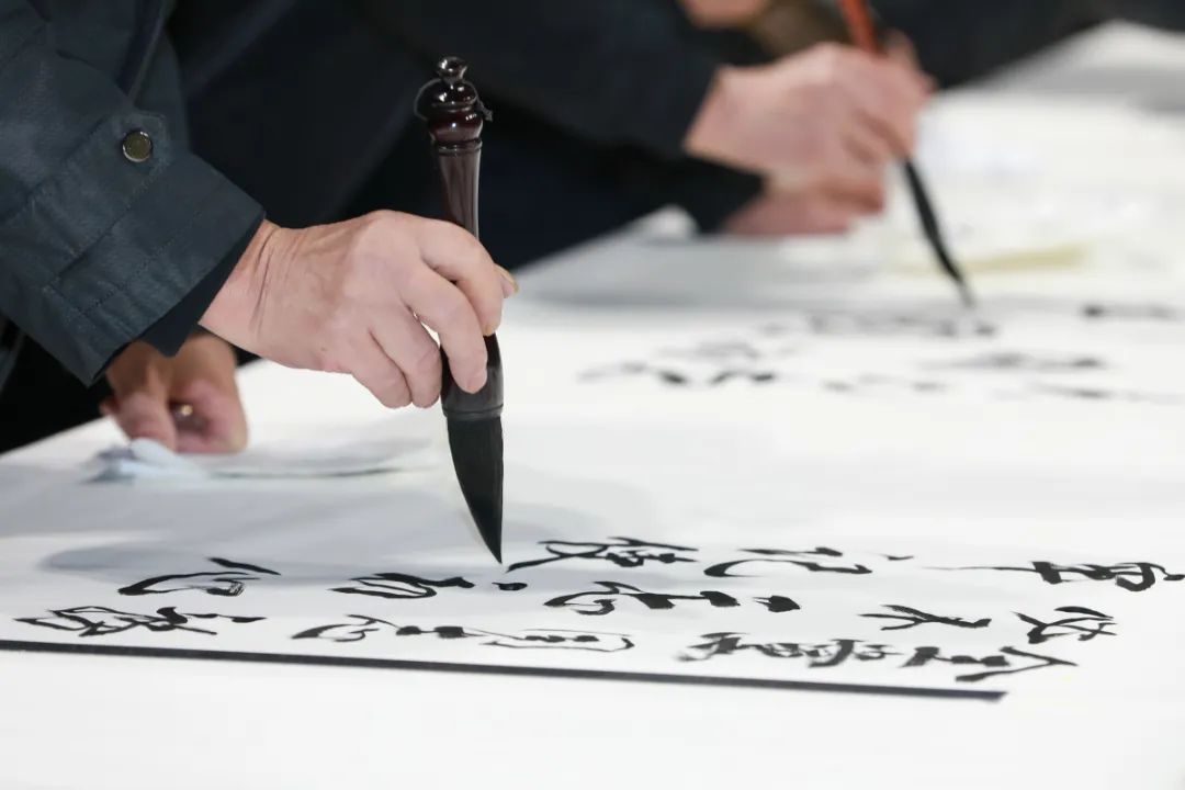 丹青映初心,翰墨颂华夏。随着百米长卷延展铺开,书法专家和书画爱好者们挥毫泼墨,以书言志,浓浓的爱国之情跃然纸上。