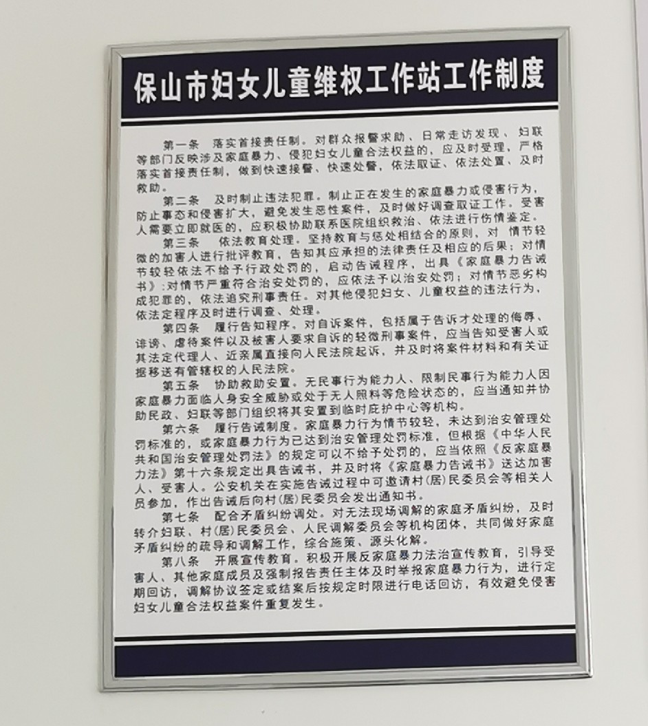 为贯彻落实党的二十大报告提出的“坚持男女平等基本国策,保障妇女儿童合法权益”的要求,进一步加大打击妇女儿童违法犯罪力度,更好地维护妇女儿童合法权益,云南省保山市公安局、保山市妇联印发了《关于进一步做好妇女儿童维权工作的通知》,在全市各派出所建立妇女儿童维权工作站,以此为抓手进一步探索新时期保障妇女儿童合法权益的新方法、新路子。截止目前,保山市实现76个派出所妇女儿童维权工作站全覆盖。