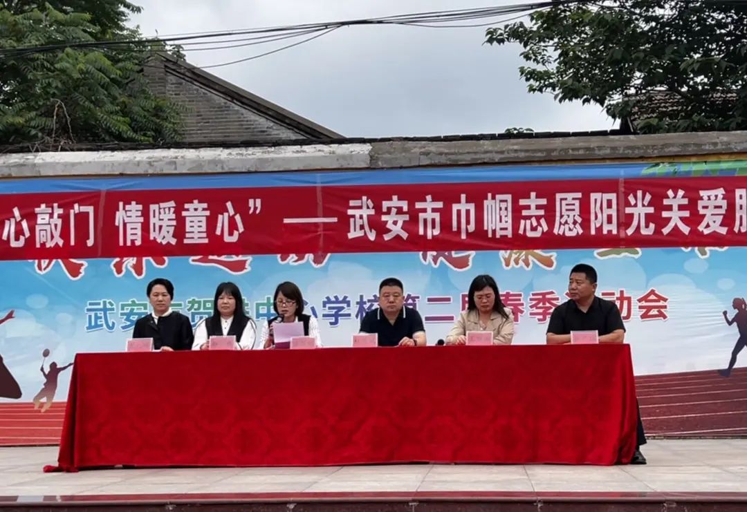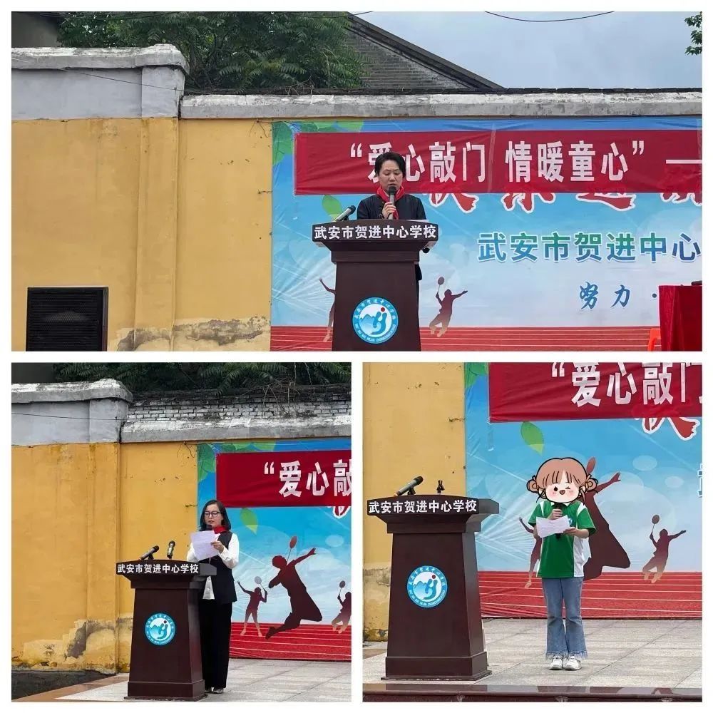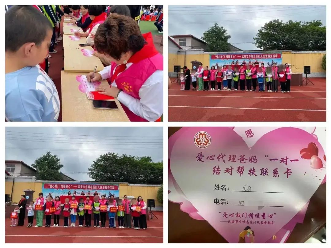 五月暖风过,六月蝉鸣起。在第73个国际“六一”儿童节到来之际,武安市妇联在贺进镇中心小学举行“爱心敲门,情暖童心”——武安市巾帼志愿阳光关爱活动,武安市妇联、女企业家协会、贺进镇、贺进镇中心小学相关负责同志以及女企协9位爱心代理妈妈、贺进镇中心小学学生代表共计200余人参加活动。武安市妇联副主席张黎明主持活动,贺进镇党委书记杜风斌致辞。 贺进镇党委书记杜风斌致辞 少先队员为与会领导及爱心妈妈佩戴红领巾 向20名留守儿童发放书包、文具等节日慰问品 爱心代理妈妈和困境儿童互赠“爱心联系卡”,爱心妈妈向儿童赠送爱心助学款 女企协会长袁红梅、“爱心代理妈妈”代表以及受助儿童代表发言 爱心代理妈妈和儿童代表共切节日蛋糕 精彩纷呈的游戏环节 “我是一颗糖”“一颗什么糖?”,游戏在爱心志愿者与小朋友们的有趣互动中拉开了帷幕,伴随着音乐起舞的小朋友们演绎着天真烂漫,游戏“珠行万里”考验着小朋友们的团结协作能力以及和“爱心代理妈妈”之间的默契,此起彼伏、紧张激动的游戏环节让孩子们与“爱心代理妈妈”之间的关系更加亲近。 孩子们用“笔芯”的手势向“爱心代理妈妈”们表达他们感恩与爱意。 武安市妇联通过举办集中关爱活动和发动社会各界共同关注关爱儿童成长,努力通过和儿童的感情联结,让少年儿童从小听党话、跟党走,树立远大理想,努力实现德智体美劳全面发展,努力做祖国和人民需要的好孩子、做社会和人民事业发展的接班人! 首批结对成功“爱心代理妈妈”名单 袁红梅 武安市创惠职业培训学校 赵淑芳 武安市淑芳家纺城 周 丽 武安市周丽健康管理有限公司 孙先凤 星光博通文化艺术学校 孙新华 西岭湖河北医药连锁有限公司 陈慧芳 武安市科力型钢有限公司 郭雅鑫 武安市智励科技有限公司 彭淑芳 邯郸笙禄文化传媒有限公司 李海云 武安市亨达广告文化发展有限公司