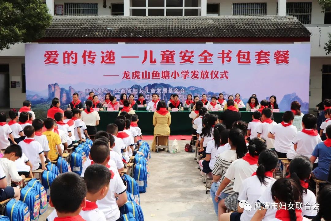 为深入贯彻落实习近平总书记关于儿童工作的重要论述,进一步加强儿童关爱保护工作,为广大儿童健康成长营造良好氛围。围绕“少年儿童心向党 争做‘四个自信’好孩子”庆“六一”主题活动要求,6月1日上午,由江西省妇女儿童发展基金会、省政府驻广东(深圳)妇女联合会主办,鹰潭市妇联、龙虎山风景名胜区管委会承办的“爱的传递·儿童安全书包套餐”发放仪式,在龙虎山鱼塘小学拉开帷幕。 江西省政府驻广东(深圳)办事处二级巡视员李卫国,江西省妇联组联部副部长刘梦灵,江西省妇联一级调研员、省妇儿基金会常务副理事长余梅香,龙虎山景区党委书记王清和,鹰潭市妇联主席蔡湘芬,江西驻粤妇联主席、江西驻广东(深圳)办事处广联处主任欧阳群,龙虎山景区党委委员、组织部长叶琛等出席活动,欧阳群主席、叶琛部长分别致辞。鹰潭市妇联副主席黄小红主持仪式。 江西驻粤妇联、深圳有关单位、企业代表等有关同志,省妇儿基金会、鹰潭市妇联、景区文教局、景区妇联有关同志和龙虎山鱼塘小学全体师生等共计300余人参加活动。 发放仪式上,现场嘉宾向学生们送上美好祝福,希望同学们心怀感恩,努力传承友善诚信和乐于奉献的品格,把爱心的接力棒永远传承下去。同时勉励同学们要珍惜今天来之不易的学习机会,变逆境为动力,脚踏实地、刻苦读书,掌握本领、增长才干,以优异的学习成绩回报社会、服务人民、建设家乡。 孩子们为现场领导嘉宾佩戴红领巾,表达他们的感谢之情。 此次活动,共发放价值近6万元的儿童安全书包套餐286个,内含文具、水杯、交通安全读本等学习用品和书籍。仪式结束后,江西省妇儿基金会秘书长徐芳在教室里,给孩子们介绍了安全书包防交通事故荧光反射、防物体坠落砸伤、救生浮具、求生口哨等功能,并向他们宣传防溺水知识,帮助他们提高安全防护能力。 收到安全书包后,孩子们都非常开心,纷纷表示今后一定努力学习,以优异的成绩回报党和政府、社会各界爱心人士的关心与关爱。