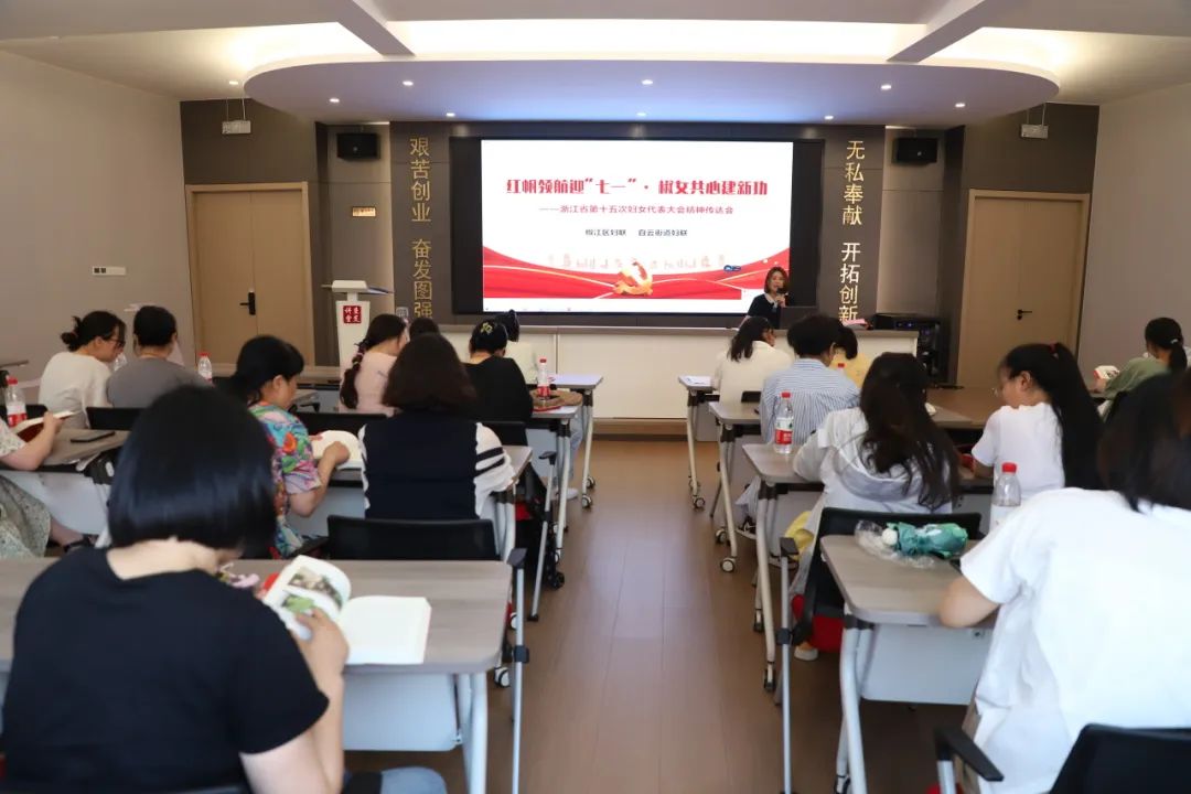 6月30日上午,由浙江省台州市椒江区妇联、白云街道妇联联合主办的循迹溯源现场学习会在云健社区党群服务中心举行。该现场学习会以“红帆领航迎‘七一’ 椒女共心建新功”为主题,通过实地走访、参观学习,在追寻习近平总书记的足迹中深切体悟习近平新时代中国特色社会主义思想的真理伟力。 重温嘱托 共寻总书记走过的“足迹” 循着习近平总书记足迹,白云街道各村(社)妇联执委走进怡家食堂、文化广场、综合展览馆等地,体悟云健社区发生的精彩蝶变。 云健社区以“友邻众享·乐活智云”为目标定位,通过一统三化九场景建设,围绕“邻里带·众享芯·乐龄环·数智核”特色主题,打造一个友邻和睦、乐龄适老、数字综治的智慧社区,目前已入选浙江省第三批未来社区。 参观过程中,大家感悟颇深,纷纷表示通过追随习近平总书记的足迹,接受了一场触及思想的精神洗礼,将始终牢记习近平总书记的殷切嘱托,为我区妇联工作的发展贡献力量。 “声”学细悟 共读《习近平走进百姓家》 学习会上,白云街道各村(社)妇联执委共读共学《习近平走进百姓家》,共同感悟习近平总书记“我将无我,不负人民”的崇高境界和赤子情怀。 学深悟透 共听省第十五次妇代会精神传达 “新时代新征程,妇女和妇联组织的使命担当是什么?我们要当好红船女儿,凝心铸魂走在前,做伟大思想的践行者……”随后,白云街道妇联主席张妙秀作为省妇代会代表向大家传达浙江省第十五次妇女代表大会精神。 椒江区妇联党组书记、主席聂美莲出席本次活动并借此机会寄语全区广大妇联干部执委:“在‘八八战略’实施二十周年和‘七一’来临之际,我们组织循迹溯源现场学习会,是希望基层妇联干部能学思想践行动,感悟真理伟力,在今后的工作中紧紧围绕中心、服务大局,秉承‘爱我椒江、不负椒江’的情怀,找准妇联工作的切入点、关键处、突破口,凝心聚力、团结奋进,为椒江高质量发展贡献更多‘半边天’力量。”