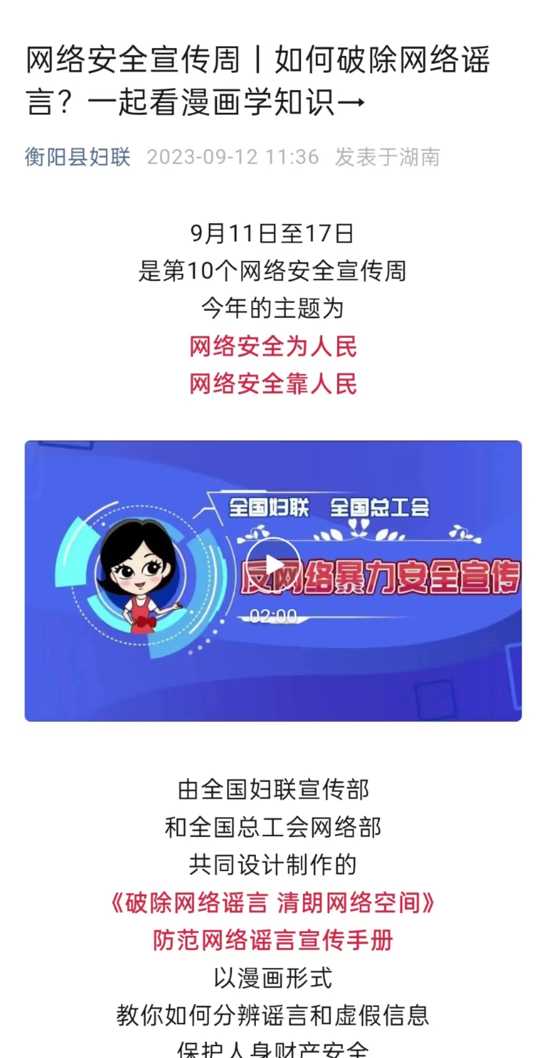 湖南省衡阳市 网络安全为人民,各级妇联在行动