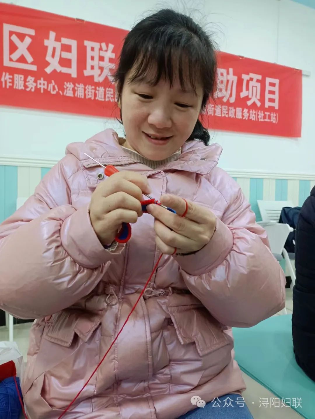 社工在活动中也很快注意到了王女士,因为每次活动她总是很早到,问题非常多,问完就自己坐在一旁慢慢琢磨短针长针以及它们的变化规律,参与此项目的成员不乏王女士这样的宝妈,还有部分因为各种原因导致就业困难的女性,大家每周固定时间坐在一起,学习毛线编织技能,相似的身份与处境让她们更有彼此体谅之心和共同话题。