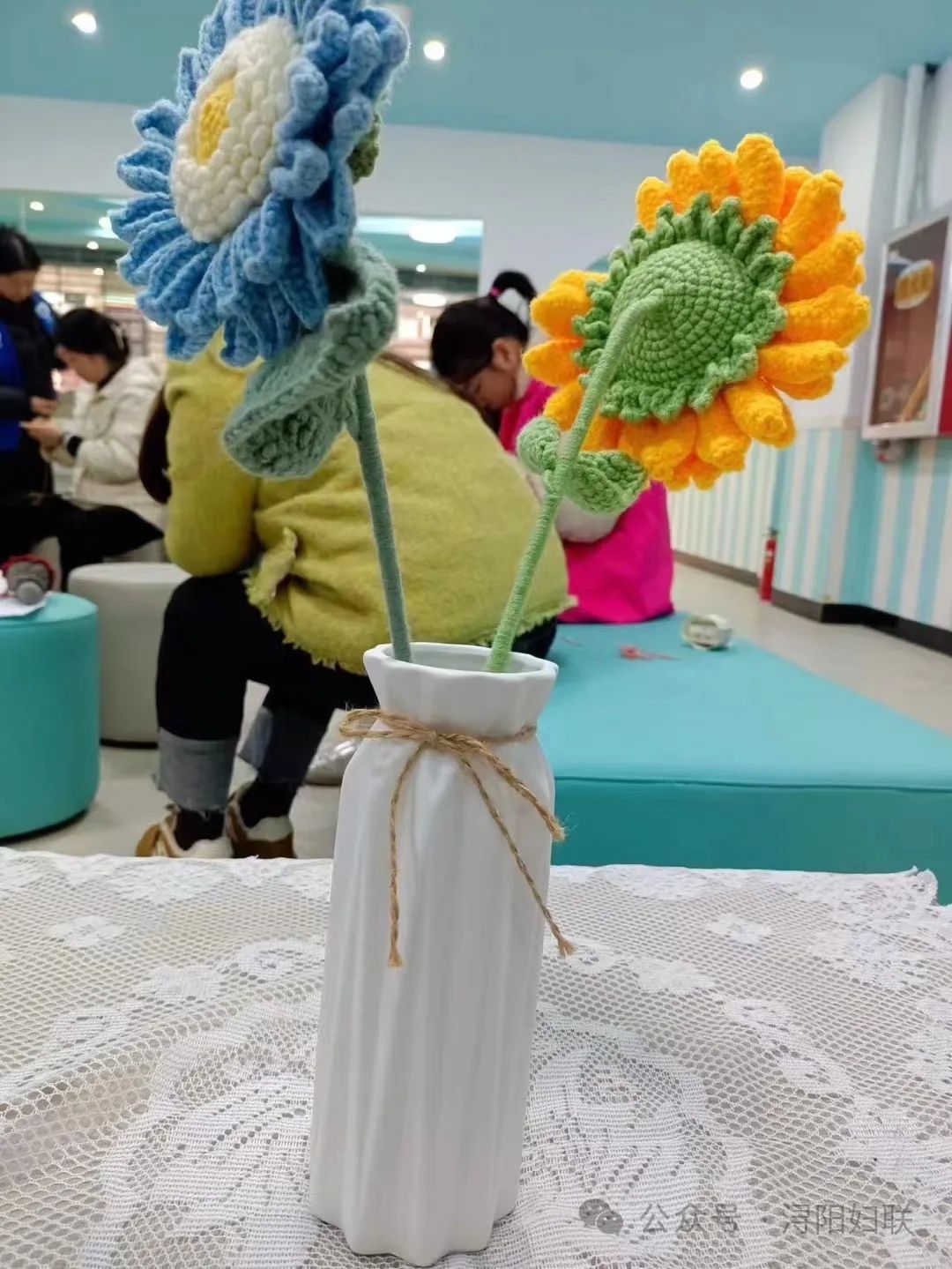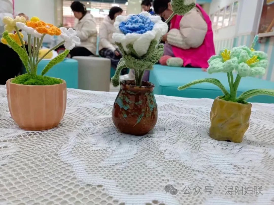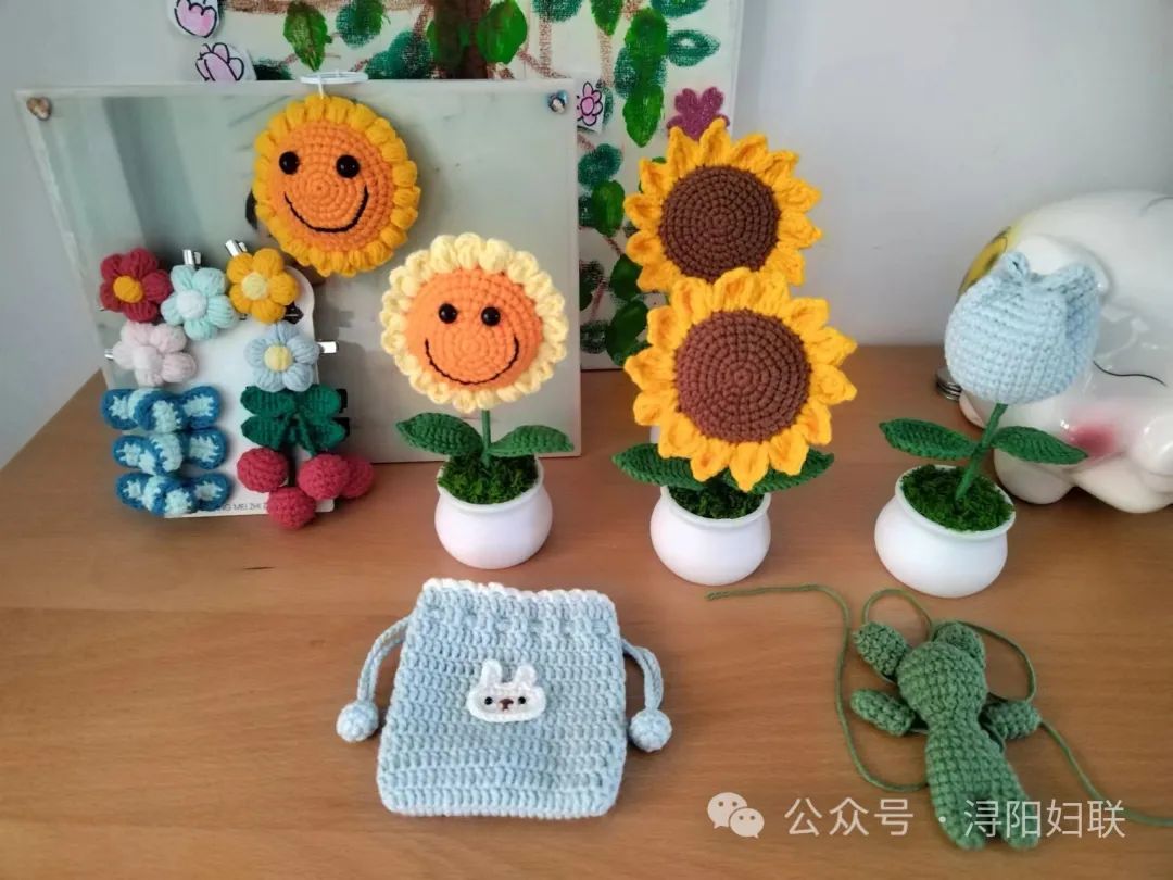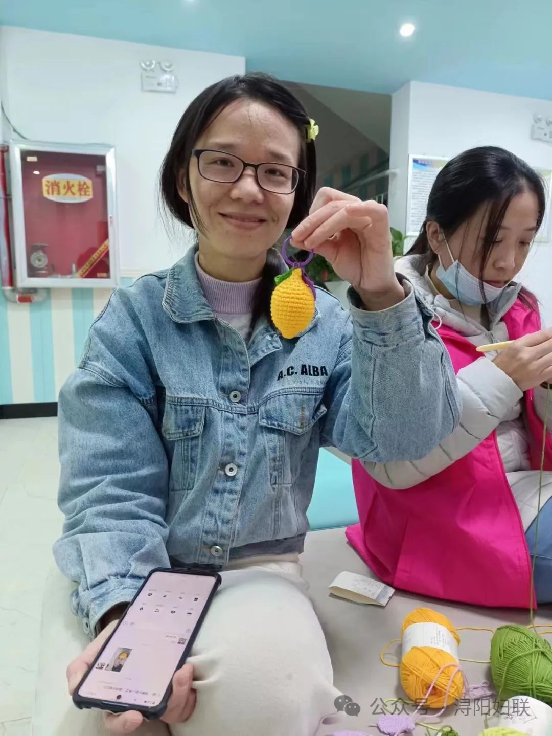 王女士第三次前往妇女儿童中心参加“‘浔’嫂计划”浔阳区妇联增能互助活动时,已经完成了一个钩针“小白”的蜕变,可以独立用毛线制作出可爱成品了。再参加每周五定期举办的课程时,她别着自己制作的发夹,向负责为她们教授技能的社工交上自己的作品,积极询问自己的不明白的地方以求尽善尽美。