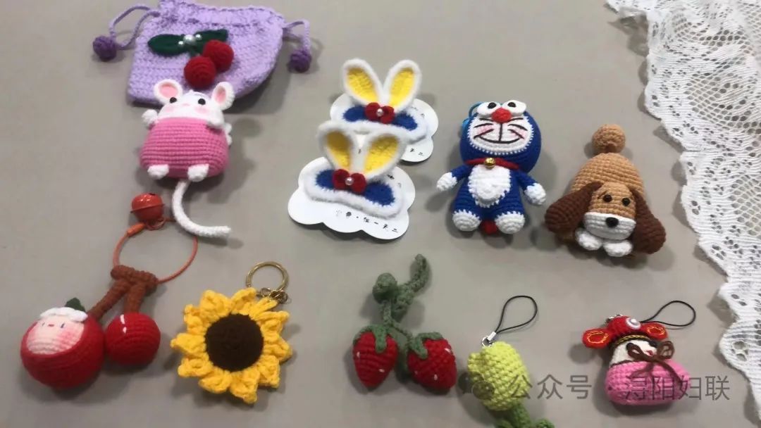 为了吸引大家的兴趣,社工和志愿者们向大家展示了钩织作品,包括挂件、玩偶、包包等,这些精美的手工作品赢得了居民们的赞叹。