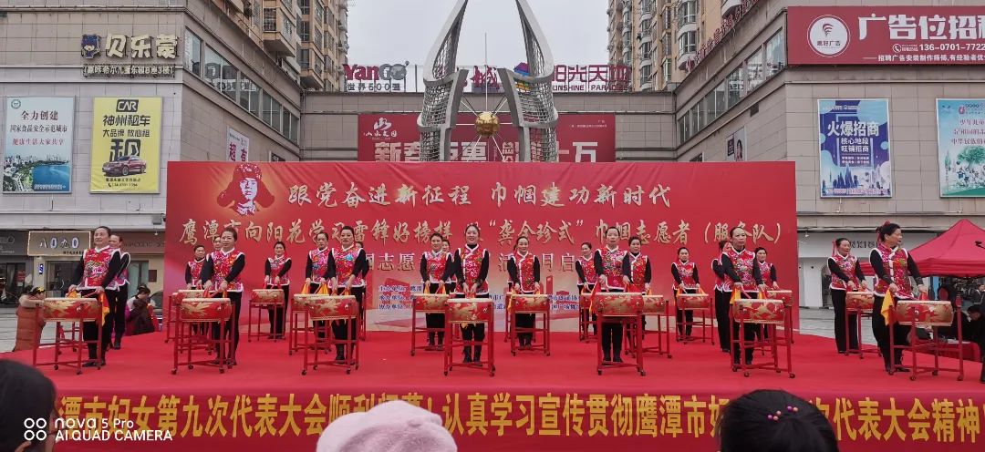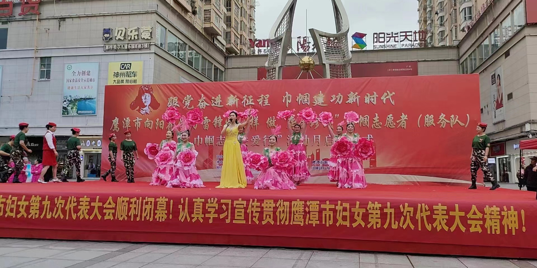 为动员和凝聚更多社会力量参与到巾帼志愿服务中来,助推大善之行,弘扬大德之尚,以点滴文明汇聚成建设现代化鹰潭的强大精神道德力量。3月6号下午,由鹰潭市妇联主办、市巾帼志愿者协会、市广场舞协会、市朗诵协会承办,月湖区巾帼志愿者协会、交通街道新广场社区协办的“跟党奋进新征程 巾帼建功新时代一一鹰潭市向阳花学习雷锋好榜样,做“龚全珍式”巾帼志愿者(服务队)“巾帼志愿关爱行”活动月启动仪式在时代广场隆重举行。 启动仪式在锣鼓表演《春满敕勒川》和龙灯队表演《龙腾盛世》中拉开帷幕。活动中,市妇联现场授予了8支巾帼志愿者服务队为“龚全珍式”巾帼志愿服务队、10名巾帼志愿者为“龚全珍式”最美巾帼志愿者、10名巾帼志愿者为“龚全珍式”巾帼志愿者荣誉称号,并邀请市创建办常务主任、市文联党组书记彭新华,市巾帼志愿者协会会长吴小莲为获奖者颁奖。活动现场还组织学习了鹰潭市妇女第九次代表大会工作报告内容,并对会议内容进行了知识问答;开展了义诊、义剪、心理咨询、法律援助、环境卫生清扫等巾帼志愿服务;市朗诵协会会员们现场诵读《思想之旗 真理之光》,声情并茂,昂扬饱满,婉转悠扬,刚柔相济,悦耳动听,扣人心弦,赢得了现场几百名市民听众热烈的掌声。 市妇联举办此次活动是为了响应全国妇联发出的“跟党奋进新征程、巾帼建功新时代”的号召,围绕“党政所急,妇女所需,儿童所盼”,聚合巾帼力量,开展“巾帼志愿关爱行”主题活动,让更多的妇女儿童感受到党的关怀和社会大家庭的温暖,推动巾帼志愿服务在新的历史起点上迈上新台阶,做出新贡献。