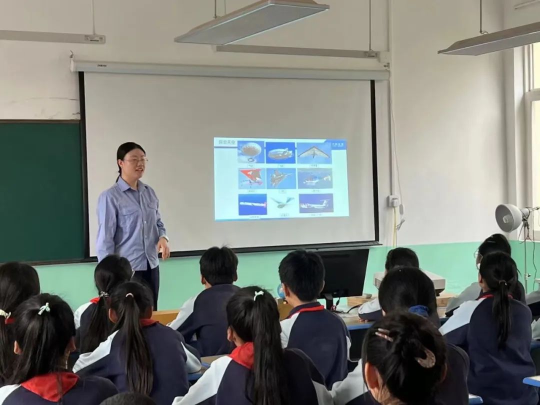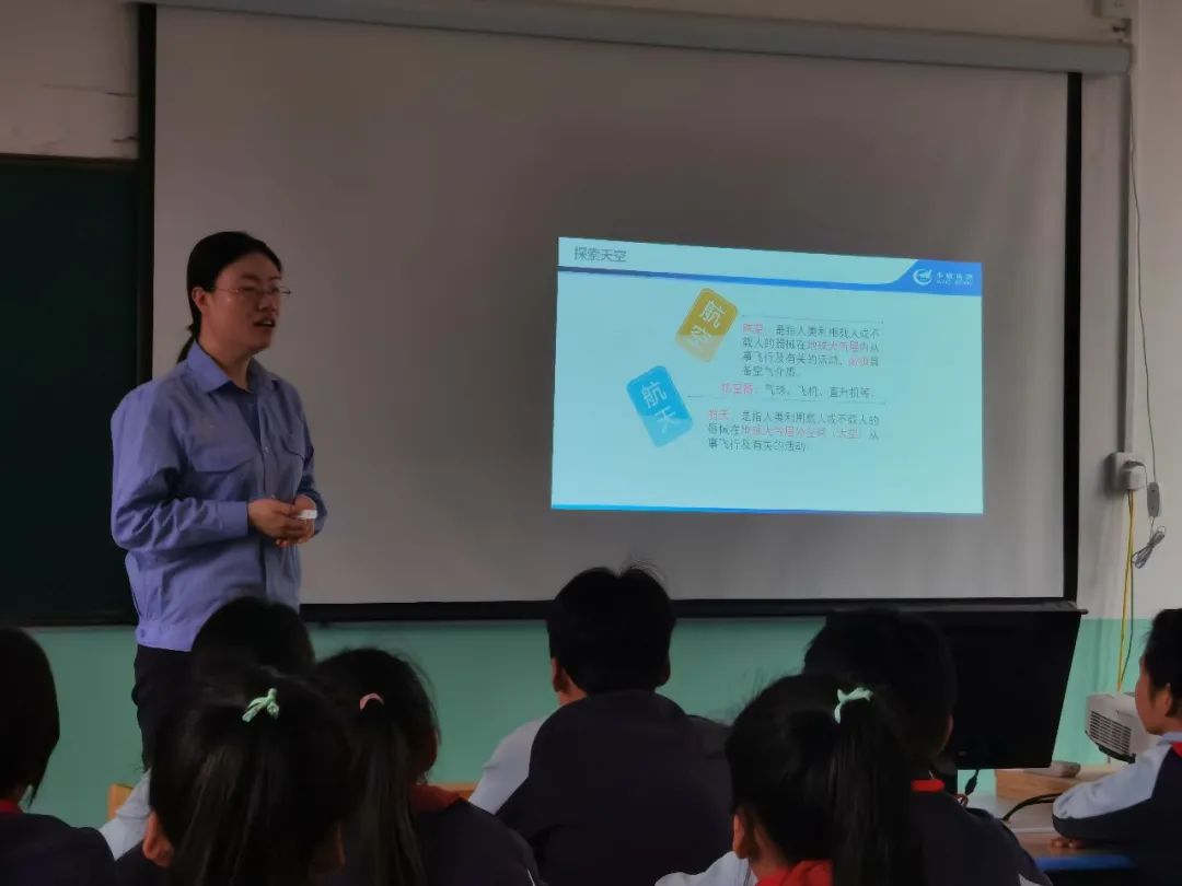 讲解老师用精彩的课件生动形象地向同学们展示了航空飞机结构设计,讲解了飞机起飞的原因、飞机的演变历程等多个方面的航空航天知识。过程生动有趣,内容丰富。孩子们认真听讲,踊跃发言,积极互动,还能赢得小奖品,航天梦在他们心间悄然种下。