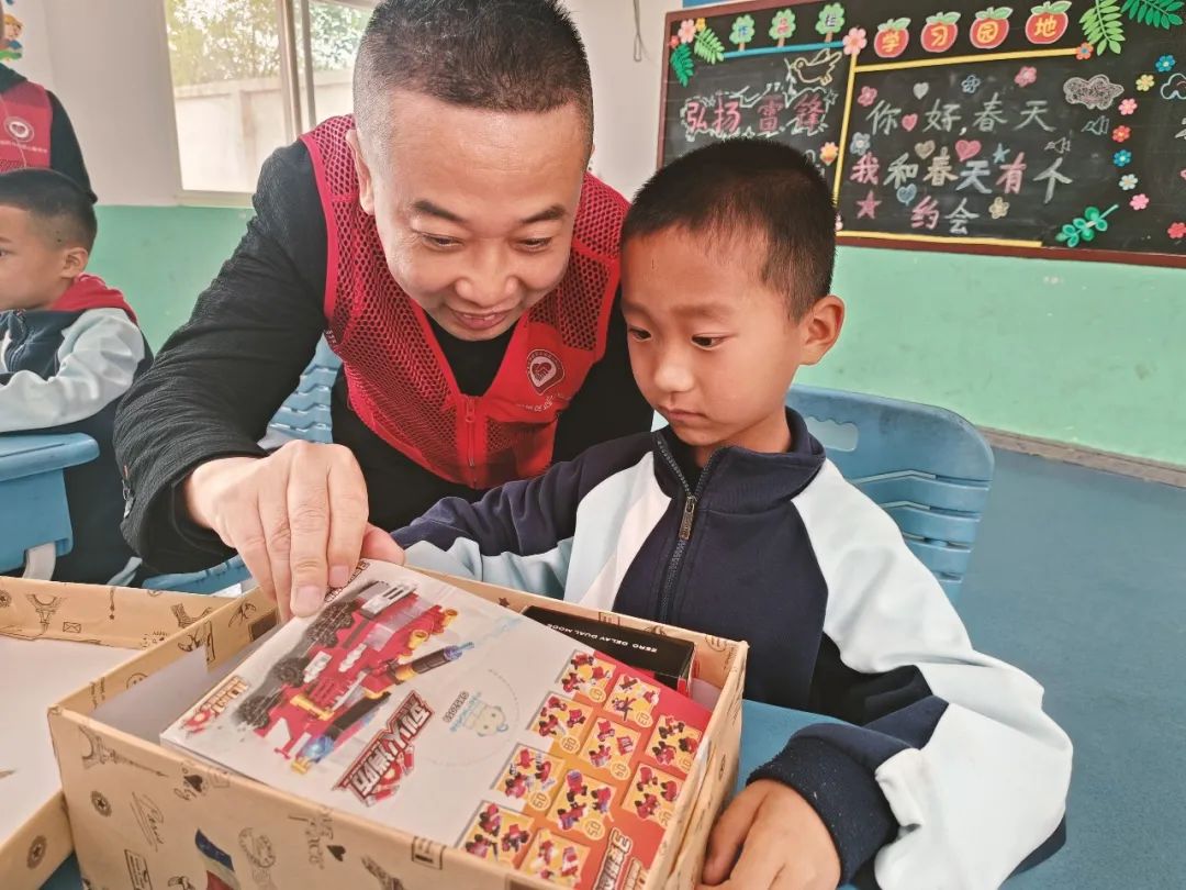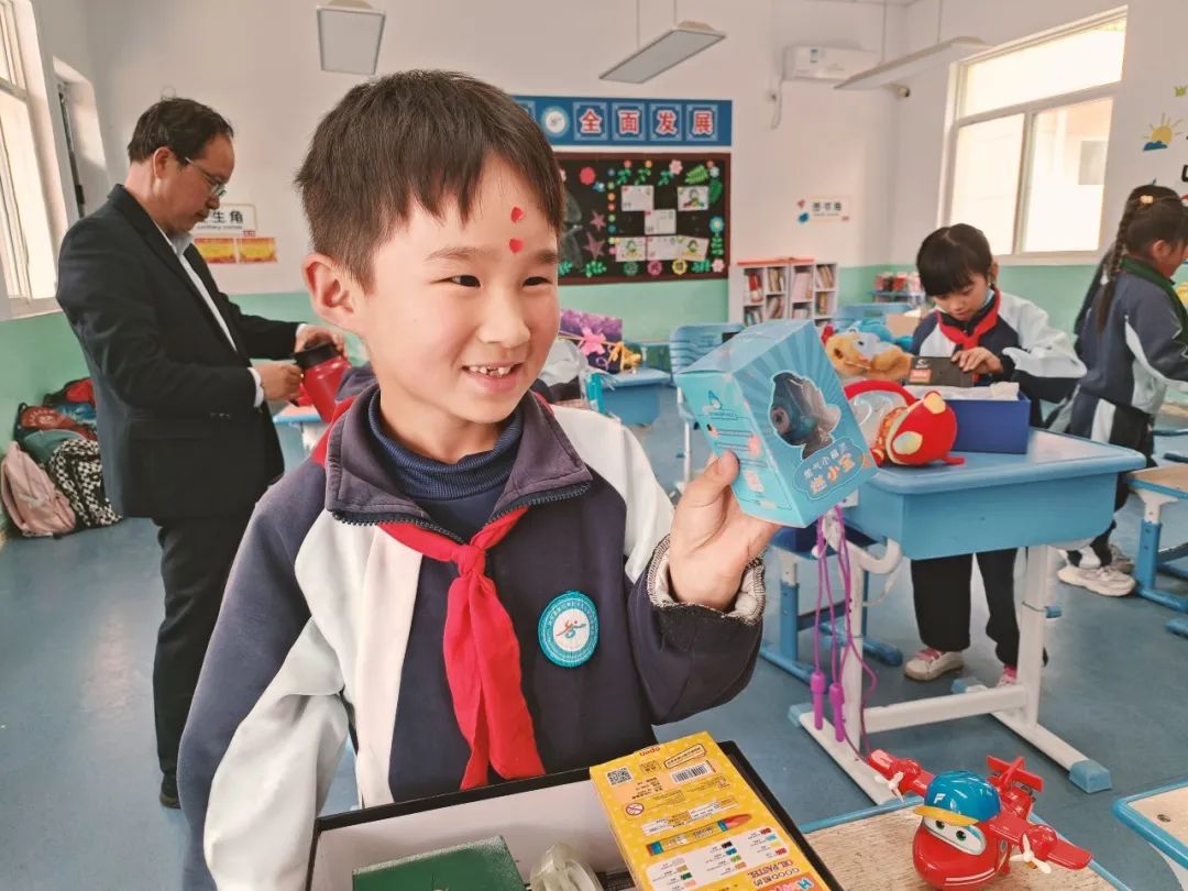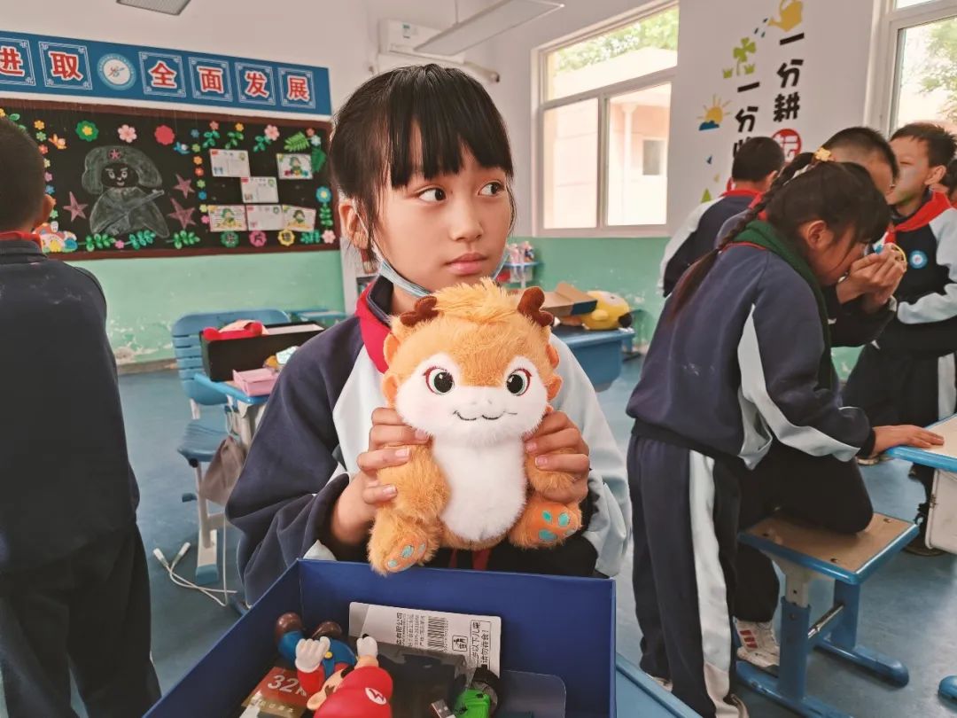 在教室里,当小朋友们打开礼盒的那一瞬间,惊喜和欢呼声此起彼伏。大家认真翻看礼物,对喜欢的玩偶爱不释手,同时热情主动和其他小伙伴互相交换,共同分享快乐喜悦。孩子们拿起笔来,一笔一划认真填写“回向卡”,以最真诚的文字和图画表达内心的感谢和祝福。礼物虽小,但承载了志愿者们满满的关爱与诚挚的祝福,送给孩子们的不只是礼物,更有被爱和惦记。