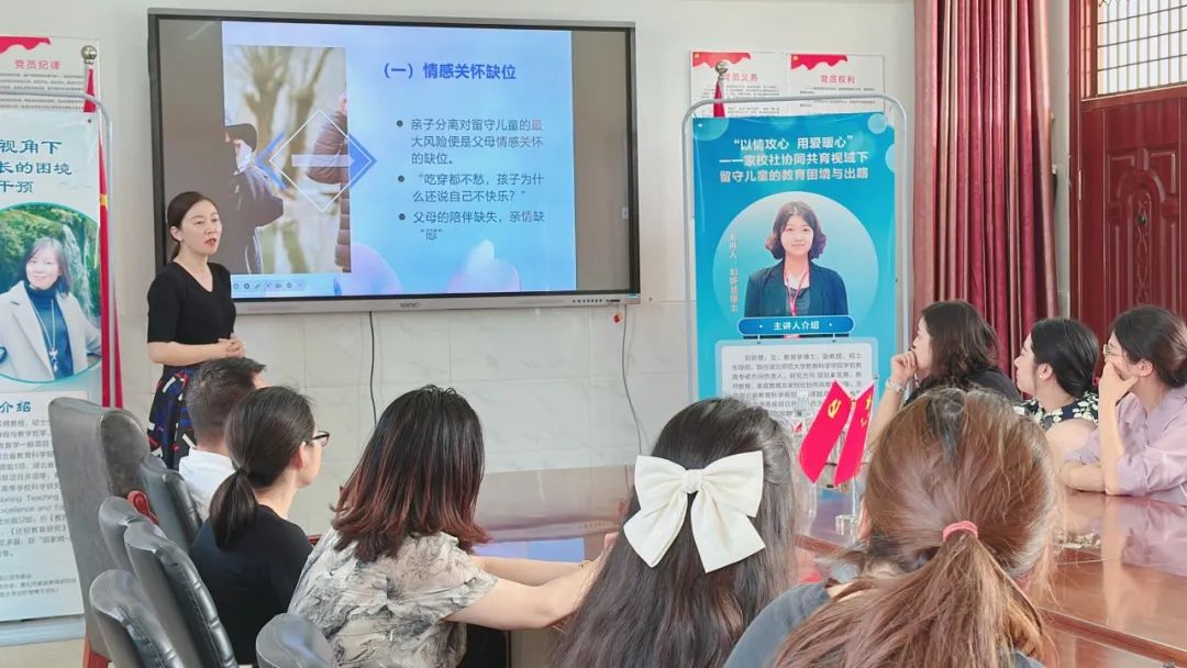为了学习贯彻习近平总书记关于注重家庭家教家风建设的重要论述、关于妇女儿童和妇联工作的重要论述精神,促进少年儿童健康成长,5月24日,由湖北省黄石市妇女联合会、黄石市致公党市委会主办,黄石市开发区·铁山区妇女联合会、黄石市家庭教育研究会承办的黄石市爱心妈妈结对关爱伴成长暨家庭教育提升活动在太子中心小学举办。 活动中,致公党市委会专职副主委谈力全,市妇联四级调研员宋绍莉先后致辞。自爱心妈妈结对关爱留守困难儿童活动启动以来,全市各级妇联组织、爱心单位积极响应,在全市招募爱心妈妈2000余名。其中,致公党黄石市委会招募爱心妈妈、整合爱心力量,向太子中心小学捐赠价值3.2万元的文具、体育器材和“六一”爱心礼物,12名爱心妈妈、爱心爸爸代表也来到现场与留守困难儿童进行结对认亲。 为了引导孩子们学习心理健康知识、丰富心理体验,湖北师范大学副教授、市家庭教育研究会副会长荆玉梅和志愿者们指导现场儿童开展心理健康问卷调查,并带领孩子们开展了生动有趣的心理疏导互动游戏,在团结互助、密切配合中,帮助他们学习情绪的特点,强化维护与促进心理健康的意识。后续,结合问卷分析结果,专家团队还将为有需要的孩子提供针对性跟踪辅导。 同时,针对留守儿童家庭教育中存在的问题,湖北师范大学副教授、市家庭教育研究会副会长刘妍慧,湖北师范大学校聘教授陶丽以及湖北师范大学讲师李一帆分别为太子中心小学的老师们带来了《“以情动人 用爱暖心”——校家社协同共育视域下留守儿童的教育困境与出路》《家校共育视角下留守儿童成长的困境与教育干预》《留守儿童的意义世界建构:世界那么大》主题讲座,并就如何加强校家社协同共育促进留守儿童健康成长开展交流探讨。 致公党市委会专职副主委谈力全,市妇联四级调研员宋绍莉,开发区·铁山区妇联主席刘萏,市家庭教育研究会副会长荆玉梅,市家庭教育研究会副会长刘妍慧,爱心妈妈代表以及学校师生共计140人参加活动。