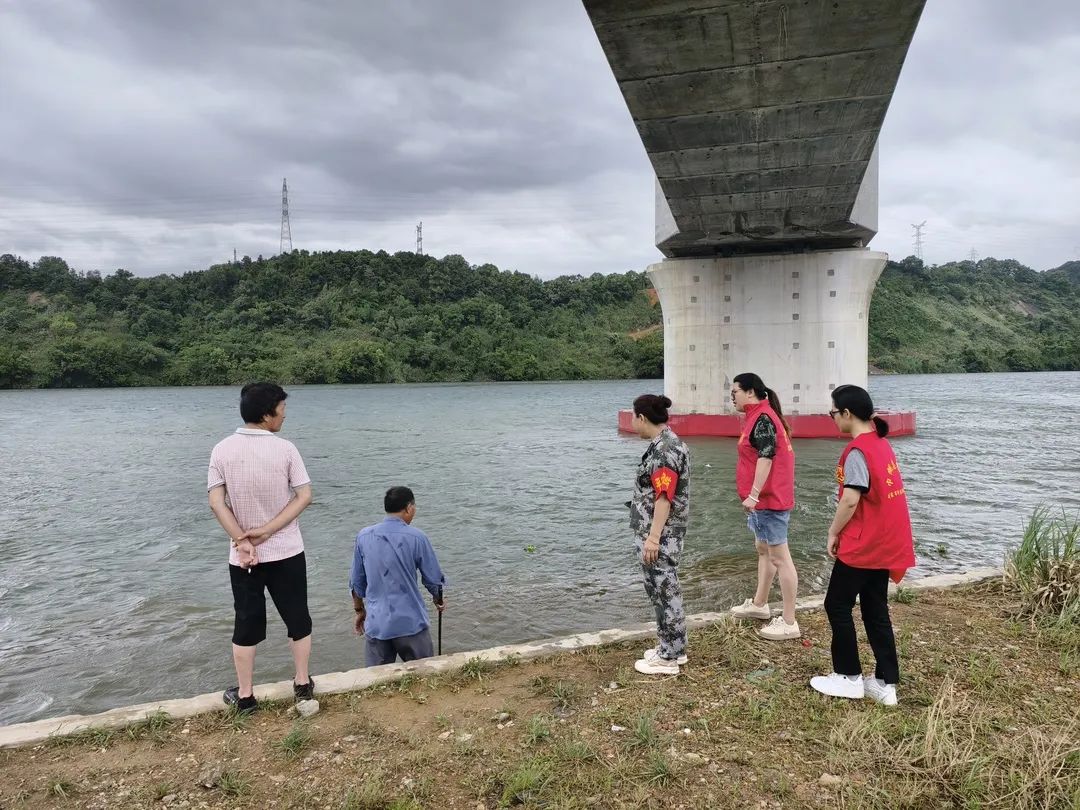 ▲洋溪街道巾帼志愿者劝导群众远离沿江危险区域