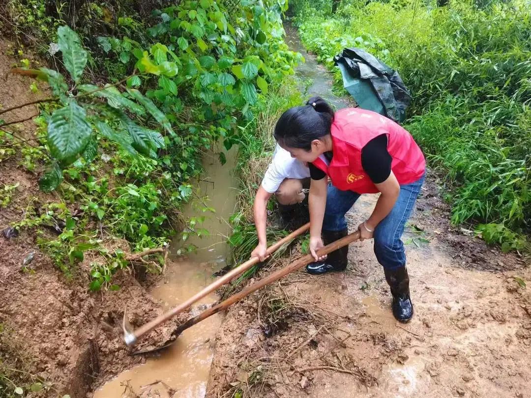 ▲大洋镇巾帼志愿者清理淤塞的排水沟渠
