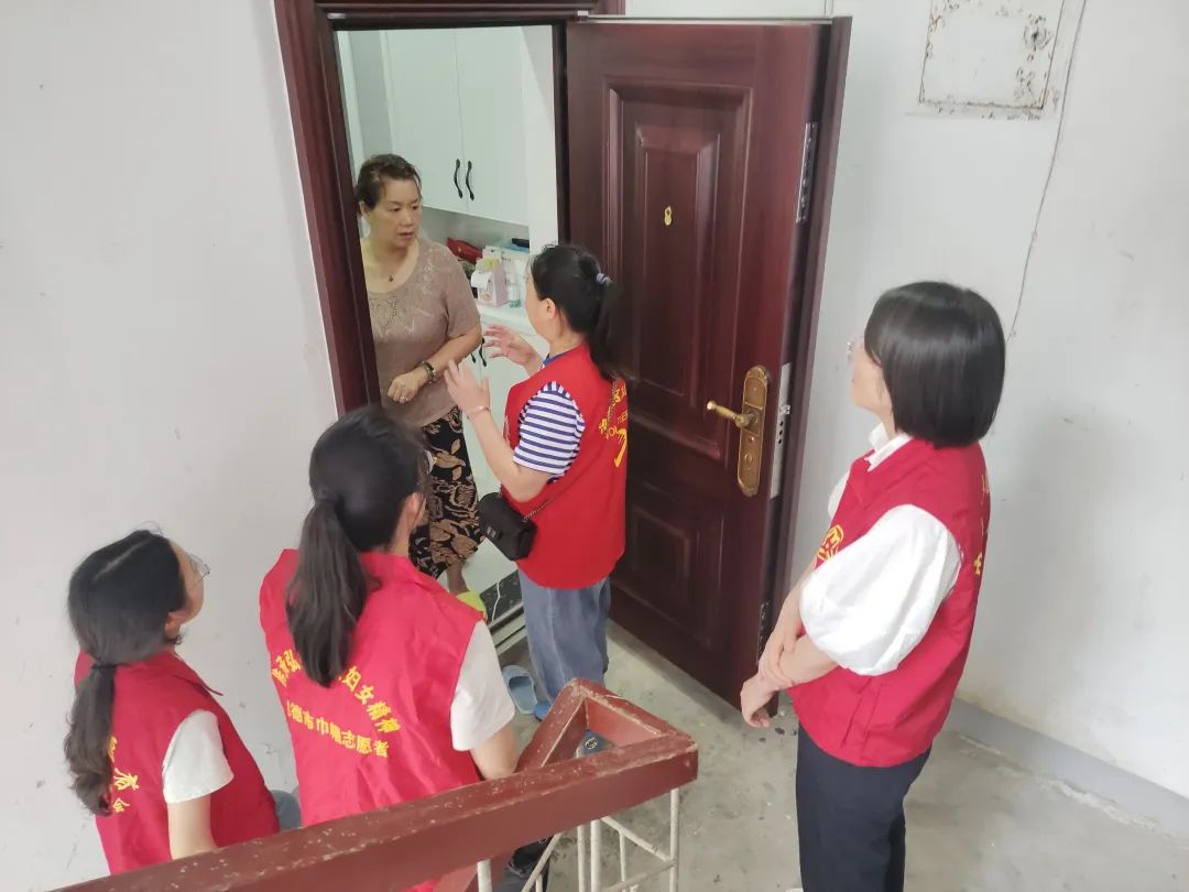 ▲航头镇巾帼志愿者上门走访独居老人家庭,宣传防汛知识
