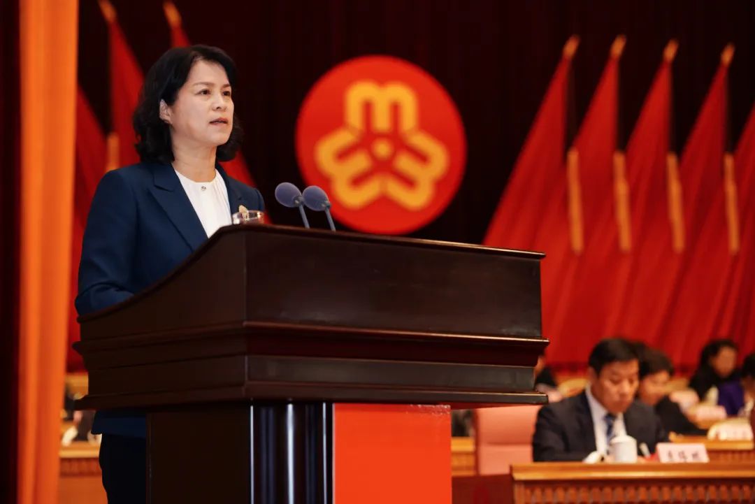省妇联主席王萍代表省妇联第十三届执行委员会作了《同心同行跟党走巾帼奋斗建新功 团结带领广大妇女为推动新时代吉林全面振兴取得新突破贡献巾帼力量》的报告。