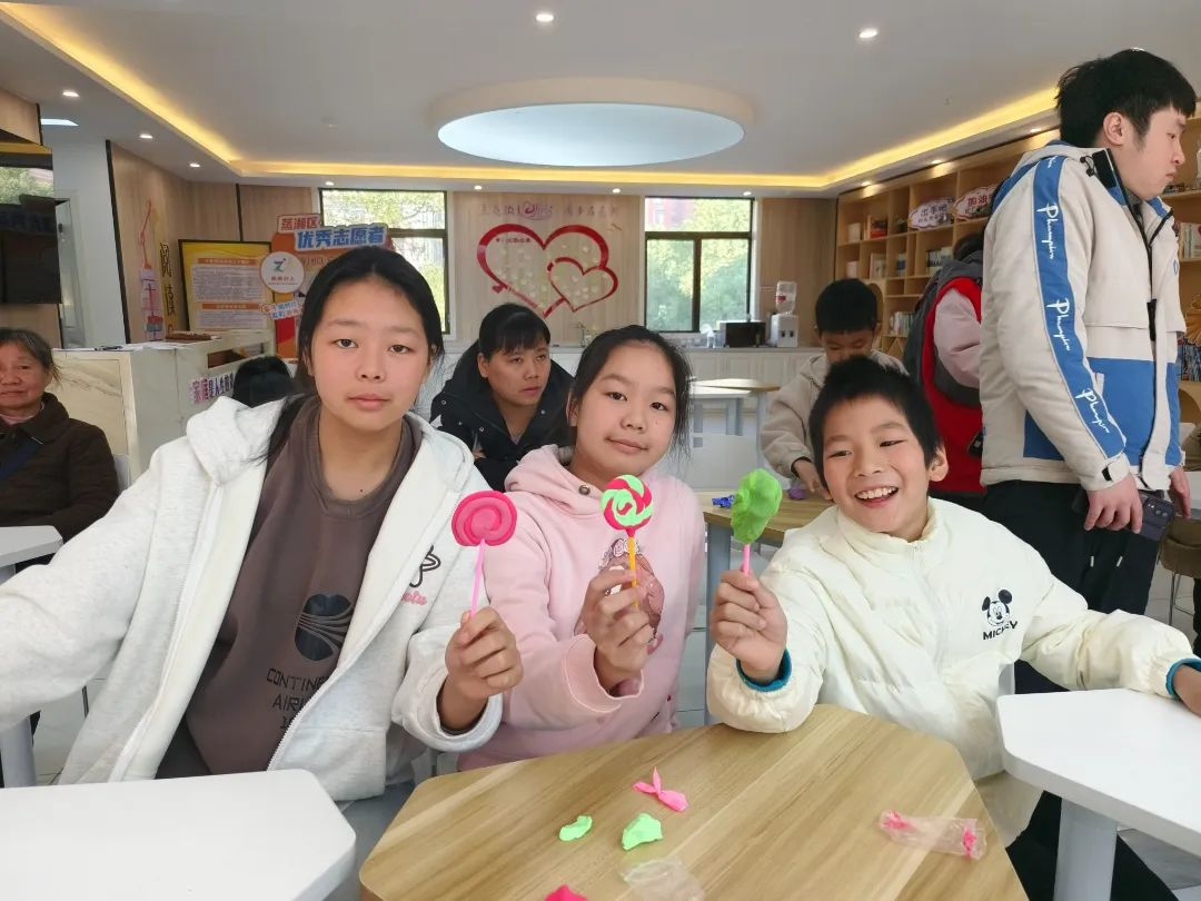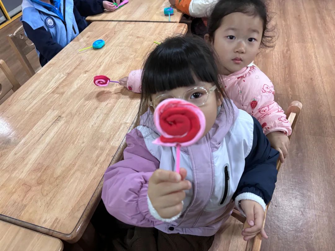 活动中,孩子们纷纷体验了“找朋友”“石头剪刀布”“木头人”等集体小游戏,在学习知识的同时锻炼思维反应力与沟通交流能力。还通过亲子、同伴合作制作“友情棒棒糖”手工并相互赠送,感受到了友情的力量与美好。