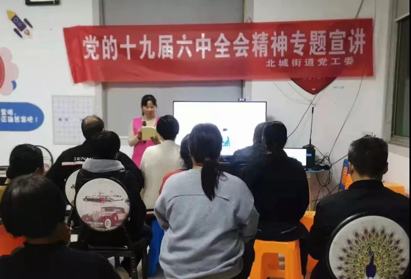 北城街道妇联组织开展党的十九届六中全会精神宣讲。向阳花巾帼宣讲员们积极在各村(社)妇女儿童之家开展宣讲,深刻领会全会中的精神要点,从百年党史中汲取力量,并结合实际工作,号召广大妇女争当“排头兵”,发挥“半边天”的作用,团结引领妇女坚定听党话跟党走的决心和信心。