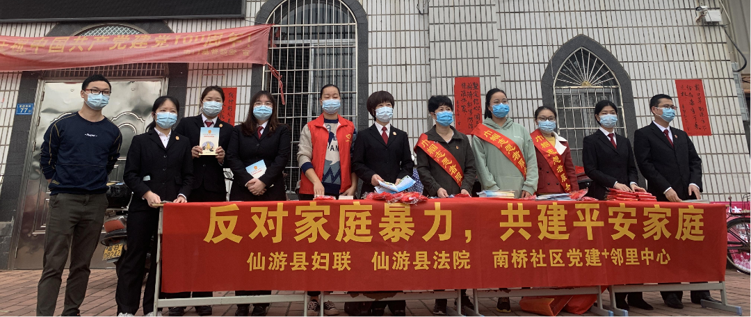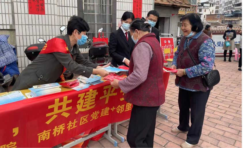 仙游县妇联携手县法院、南桥社区“党建+”邻里中心在南桥社区开展“反对家庭暴力,共建平安家庭”主题宣传活动。