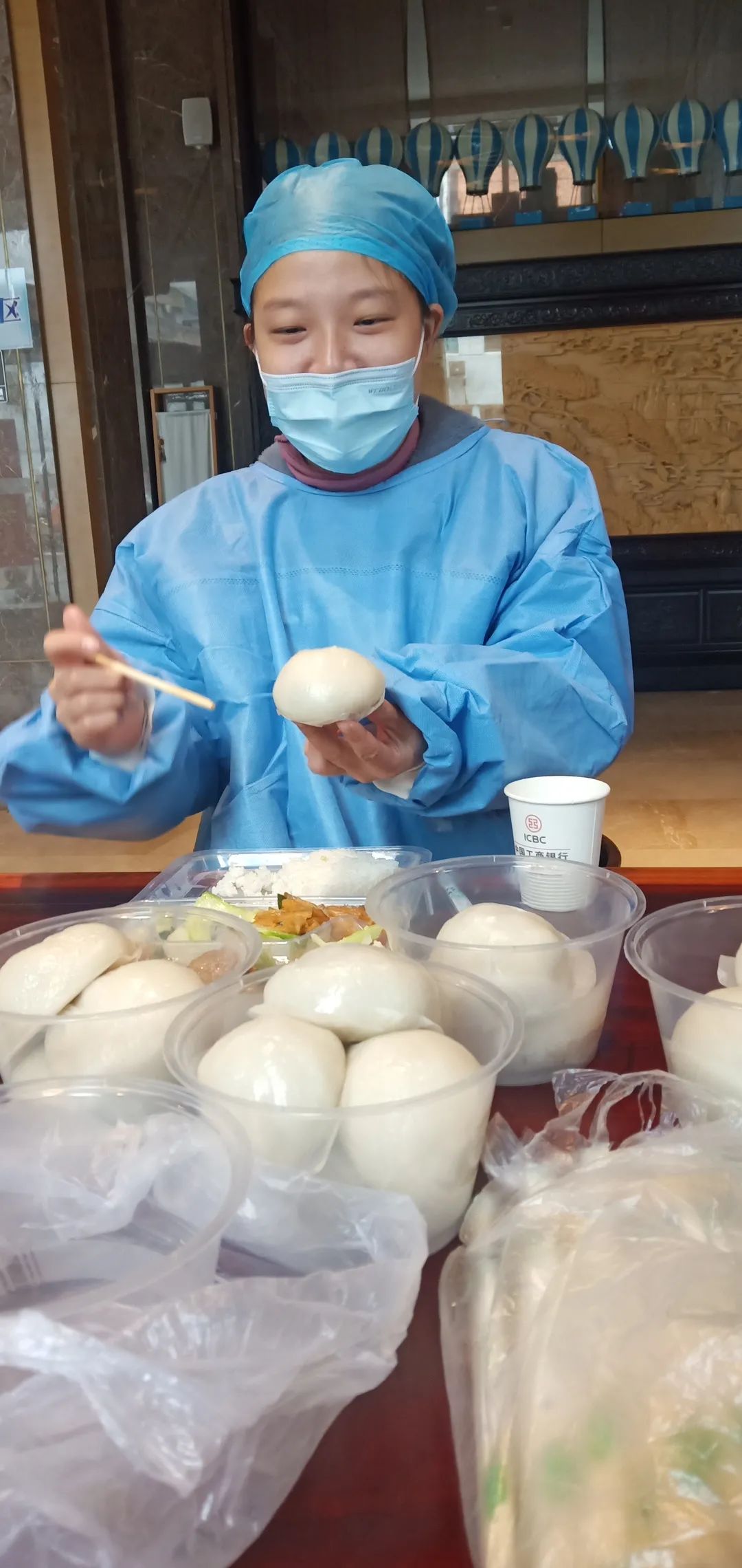 “谢谢你们啊,忙了大半天,让我们吃上了热乎乎的冬至果。”庞医生拿着一只鲜美可口的什锦冬至果,脸上挂上幸福的笑容。一直坚守在一线的工作人员收到这份暖心午餐后,感动地对着志愿者翘起大拇指,“大冷天,羊排搭配冬至果,真是暖心又暖胃!”