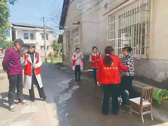▲渌口区渌口村妇联执委走街入户,了解群众需求,宣传湘妹子能量家园试点工作。