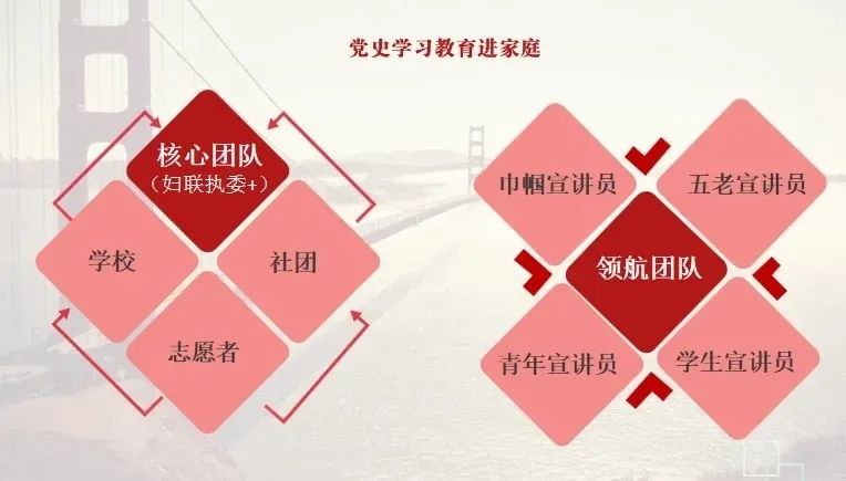 2021年是“十四五”规划的开局之年,恰逢建党百年,也是全面建设社会主义现代化国家新征程的起步之年。浙江省台州市椒江区妇联深入学习贯彻十九届五中、六中全会精神和习近平总书记“七一”重要讲话精神,全面落实省委、市委、区委各项决策部署,充分发挥示范作用,带动各街道(镇)妇联围绕中心、服务大局,心系群众、担当作为,立足家庭、融创未来,推动妇女儿童工作纵深发展。 每一份努力、每一滴汗水都见证着我们携手并进走过的路。近期,我们将陆续推送2021年度镇街特色品牌请查收并为她们点赞! 今天,让我们和小编一起走进白云街道妇联!《学百年党史 传红色家风》——白云街道妇联打造“党史学习教育进家庭”红色矩阵。 为深入贯彻落实习近平总书记关于注重家庭、注重家教、注重家风的重要指示精神,在全社会营造爱党爱国爱家的良好氛围,白云街道妇联以街道“大陈岛垦荒精神实践营”为载体,全力打造党史学习教育进家庭“红色矩阵”,引领广大家庭传承红色基因,推动新时代家庭精神文明建设迈上新台阶。 主要做法 打造红色阵地 激活“党史学习教育进家庭”一池春水 以“一厅一间”、“一室一平台”,打造“党史学习教育进家庭”的活动阵地。 “党史学习教育厅”为家庭阅读党史书籍,了解红色文化提供学习阵地;“红色直播间”引领广大家庭在学习互动中汲取精神力量;“红色观影室”起学于有形,润物于无声;“打卡小程序”推动学习和实践入脑入心、出新出彩。 建强活动队伍 汇聚“党史学习教育进家庭”智慧力量 实行“不为所有,但为所用”的柔性建队策略,聚集智力资源,组建党史学习教育进家庭“最强大脑”。 实施系列项目 刮起“党史学习教育进家庭”疾风劲雨 发布家庭党史学习教育五大系列项目,创新党史学习教育方式,以活动促学习,以实践促成长。 青少年党史课堂 以讲座的方式,带领学生走进历史,理解历史。 红色直播分享 以“家庭联播”、“党员展播”、“五老助播”的形式带领更多的线上家庭总结和传承党的优秀经验。 亲子红色绘本阅读 以讲、读、画、演等方式重现英雄故事,传承红色基因。 亲子红色观影沙龙 以忆、谈、唱、写的方式,多层次、多视角、立体化地透过电影学党史。 亲子红色游考 以“重走长征路”、“沿着垦荒路”、“解码红色电波”、“光影忆英雄”等有意思又有意义的“考题”,检验家庭学习党史的成效。 项目成效 学习阵地“红”起来 参加打卡的亲子家庭、学生团队共计53批次,累计人数达2000多。 系列项目“火”起来 “亲子红色绘本阅读”17期、“亲子红色观影沙龙”12期、“青少年党史课堂”20场、“红色直播分享”8期、“亲子红色游考”5场,线上打卡200多个家庭共计500多次。 学史力行“快”起来 100多个家庭参加“中秋家访”困难结对、“中华慈善日”爱心义卖、“亲子反诈先锋行动”1+7+N反诈防骗宣传活动、“牵手星星的孩子”送助学金等志愿活动,点亮家庭学习党史的践行之路。 品牌影响“广”起来 先后承办全市“学百年党史 传红色家风”党史学习教育进家庭活动、区“红帆领航 阳光成长”垦荒精神实践活动;评出“星级家庭”、“先锋家庭”共80多户进行表彰;相关工作在《中国妇女报》、中国妇女网、中国蓝新闻网、《台州日报》、《台州晚报》等媒体报道,取得了良好的社会效应。 亮 点 “准”字发力,针对不同家庭成员设置不同学习内容,使党史学习教育入脑入心; “趣”字为魂,红色游考、观影日志、党史竞答、先锋行动等多种形式贯穿整个过程,使党史学习教育动人动情; “活”字为功,利用直播平台、打卡小程序、自编红色家风书籍、印发红色打卡指南等载体,使党史学习教育走深走实。
