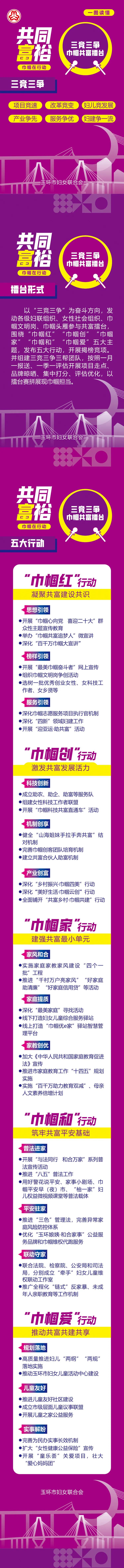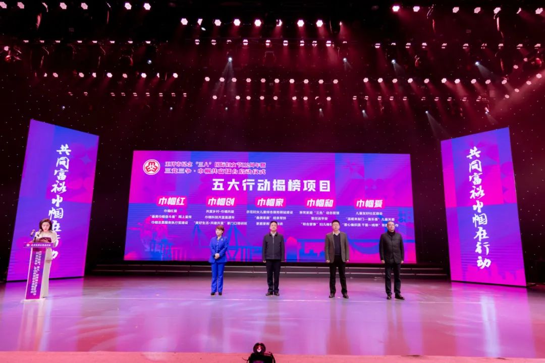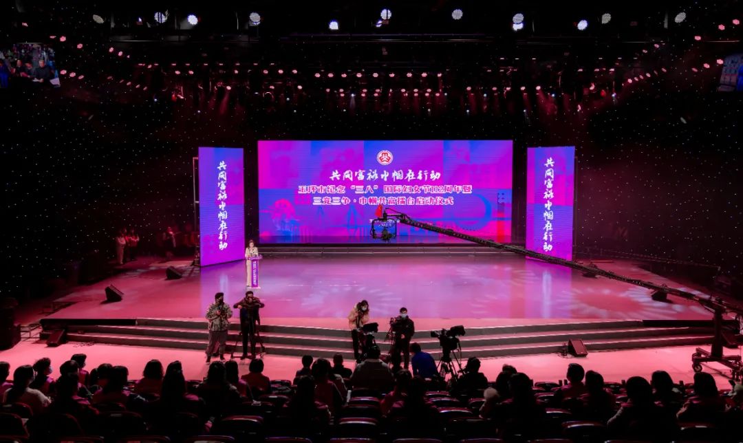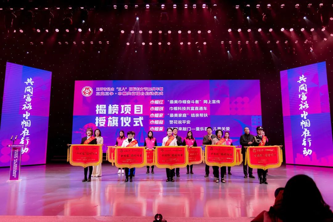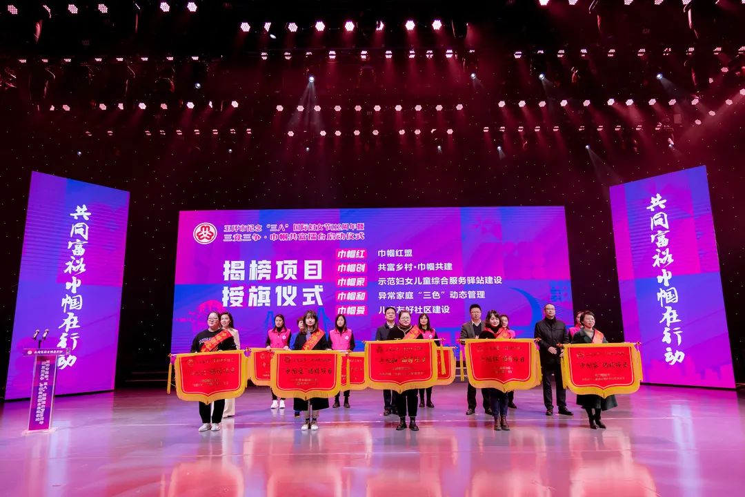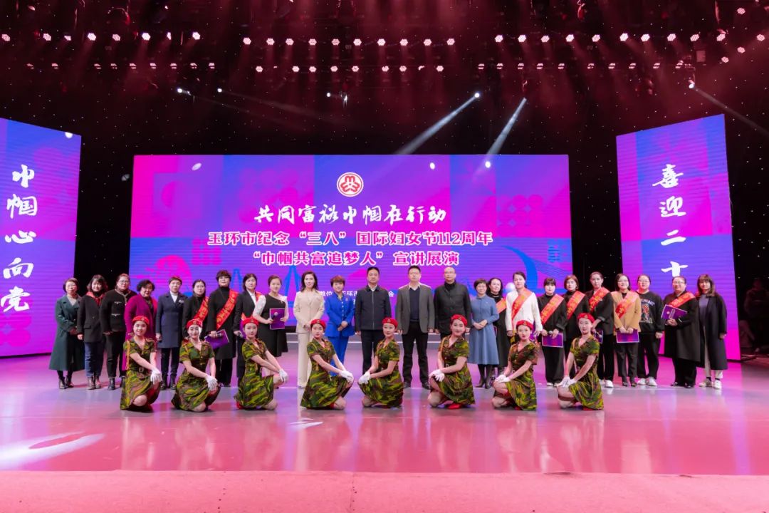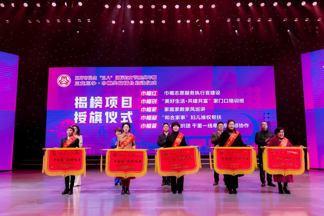 2022年是党的二十大召开之年,为认真落实浙江省妇联“共同富裕巾帼在行动”及玉环市委“三竞三争·五年冲高”工作要求,浙江省玉环市妇联积极启动三竞三争·巾帼共富擂台,通过发动各级妇联、女性社会组织、巾帼文明岗、巾帼头雁参与揭榜竞项,形成“项目竞速、改革竞变、妇儿竞发展和产业争先、服务争优、妇建争一流”的三竞三争赛拼氛围,团结引领广大妇女为建设共同富裕先行示范市争创巾帼样板、贡献巾帼智慧。 3月7日晚上,“共同富裕巾帼在行动”玉环市纪念“三八”国际妇女节112周年暨三竞三争·巾帼共富擂台启动仪式在市传媒中心一号演播厅隆重举行。 巾帼共富擂台启动仪式 授旗仪式 现场,为“巾帼红”“巾帼创”“巾帼家”“巾帼和”“巾帼爱”行动中首批15个重点项目揭榜授旗。 点亮手印 “共同富裕巾帼在行动”玉环市三竞三争·巾帼共富擂台正式启动! 巾帼共富追梦人 宣讲展演 启动仪式后,市妇联还联合市文化馆举办了“巾帼心向党 喜迎二十大”巾帼共富追梦人宣讲展演。宣讲展演分为“巾帼红”“巾帼创”“巾帼家”“巾帼和”“巾帼爱”五个篇章。 在美丽的东海之滨,有9位女哨员远离城市的喧嚣,在浙江省巾帼爱国主义教育基地——坎门英雄基干民兵营与望远镜作伴,用巾帼红守护海空蓝。 美好生活•巾帼云创,通过玉环市妇联主播、村播的培育,越来越多的居家妇女与互联网结缘,开展直播带货、助力“云端经济”。 助力共同富裕,离不开这样一批巾帼创客,她们有女企业家、乡村振兴达人、巾帼云创客、巾帼主播、巾帼新农人,还有女科技工作者、非遗工作者,她们用智慧、勤劳、拼搏、创新在玉环高质量发展中抒写巾帼笔墨。 玉环市妇联致力打造妇女儿童综合服务驿站,实现功能一站集成、服务一键触达,使驿站真正成为广大家庭信赖和热爱的“温暖之家”。 有一群女生,她们英姿飒爽、柔中带刚,她们不让须眉、守护玉环。为提升群众安全意识,玉环市妇联联合玉环市公安局重磅推出“警花说平安”栏目。 未成年人的平安成长关系到每一个家庭的和谐幸福。玉环市心灵花园青少年心理服务中心志愿者和海山学校学生们带来歌曲《苔》。 活动在市妇联党组书记、主席王慧慧带领市妇联执委、乡镇(街道)妇联代表宣读《共同富裕巾帼在行动》倡议中推向高潮。 全场活动在歌曲《喝彩巾帼》中落下帷幕。 巾帼共富擂台 一图读懂 共同富裕巾帼在行动,在共富的道路上我们与时代同行,一路追梦 共向未来!