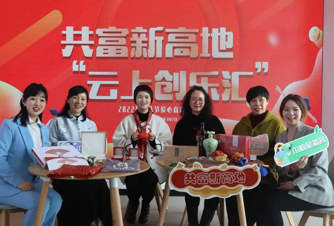 3月2日,诸暨市妇联在浙江未来乡村试点村——枫桥镇杜黄新村举办了“共富新高地——云上创乐汇”“三八”节爱心直播活动,邀请各界女性代表在直播间畅所欲言,分享创业经历、未来愿景等。代表们还在直播间当起了带货主播,为直播间观众介绍产品。市妇联携手女企业协会、伊创社代表,为杜黄新村“爱心食堂”送上温暖和祝福,共享共富成果。