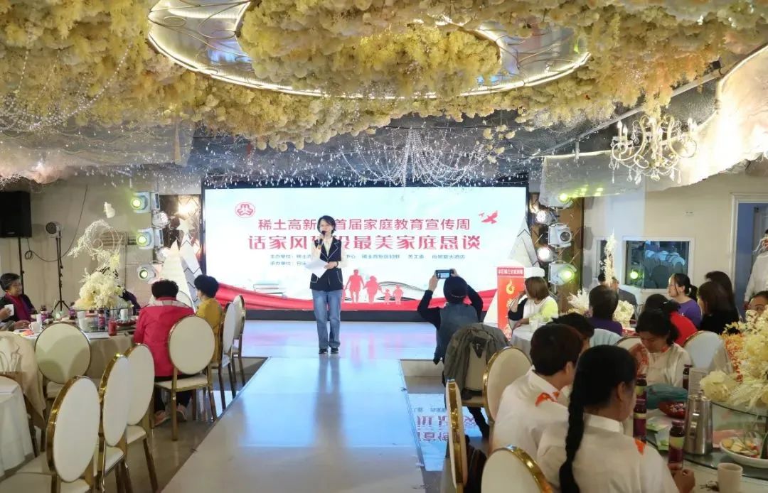 5月10日,稀土高新区举办全国首个家庭教育宣传周“话家风建设最美家庭”恳谈活动。辖区最美家庭代表、各街镇妇联干部、部分社会组织成员共30人参加恳谈活动,并在“高新女子”快手号进行直播。