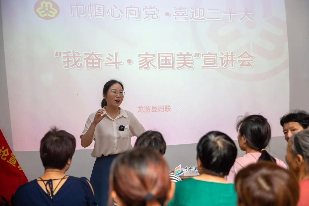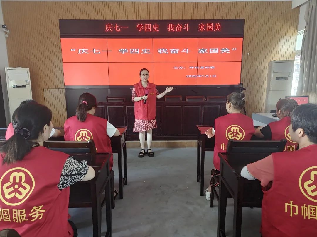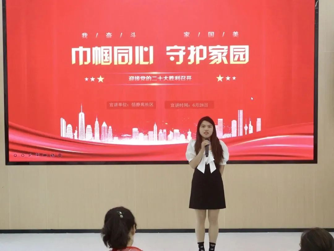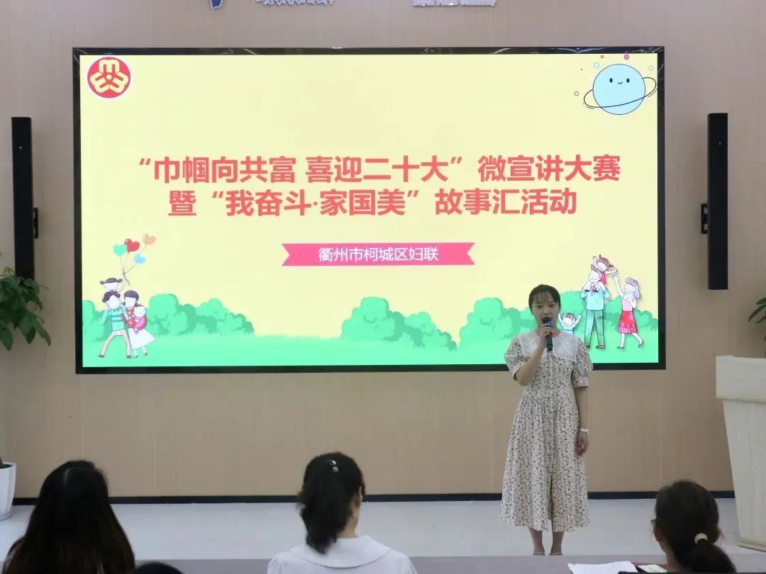 为深入贯彻落实省第十五次党代会会议精神,深化开展“巾帼心向党 喜迎二十大”群众性主题宣传教育活动,浙江省衢州市各级妇联在“七一”来临之际,开展了主题宣讲、巾帼志愿服务等活动,引导广大家庭和妇女群众更加自觉地跟党奋进新征程,以实际行动迎接党的二十大胜利召开。 01 女党代表分享参会心得 仙鹤股份有限公司常务副总、区妇联兼职副主席王敏岚是浙江省第十五次党代会的代表。6月24日,她在衢江区妇联十五届四次执委(扩大)会上为乡镇妇联主席、区妇联全体干部宣讲了省党代会精神,并分享自己的心得体会。她认为在共富路上,妇女姐妹发挥的不仅仅是半边天作用,而是1+1>2,立足本职岗位,在工作创新中追求乐趣;要从小处入手,从身边事做起,将女性的精气神统一到共同建设美好家园的行动上来,为建设四省边际共同富裕示范区贡献巾帼力量。 02 “我奋斗 家国美”主题宣讲 1.6月30日,龙游县妇联组织8090巾帼理论宣讲团前往塔石镇泽随村妇女儿童综合服务驿站开展“我奋斗 家国美”宣讲活动。宣讲员们围绕家庭家教家风建设,美丽家园建设,共同富裕主题等开展宣讲。 2.6月28日,柯城区妇联在白云街道白云社区举行“巾帼向共富 喜迎二十大”微宣讲大赛暨“我奋斗·家国美”故事汇活动。 3.开化县妇联开展庆七一“我奋斗 家国美”巾帼宣讲会活动,通过宣讲四史、十九届六中全会精神以及省第十五次党代会精神,激励广大妇女群众爱党、爱家、爱国,凝聚巾帼力量,实现巾帼引领。 03 巾帼志愿活动 1 6月30日,龙游县妇联组织巾帼志愿者开展两癌知识宣传,为大家讲解女性宫颈癌的发生及预防知识,并解答大家提问。 2 6月30日,柯城区九华乡妇联开展“我爱我家垃圾分家,美丽庭院你我共建”农村环境卫生整治巾帼志愿服务活动。