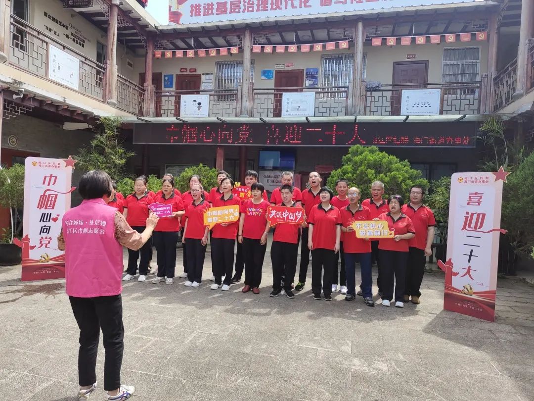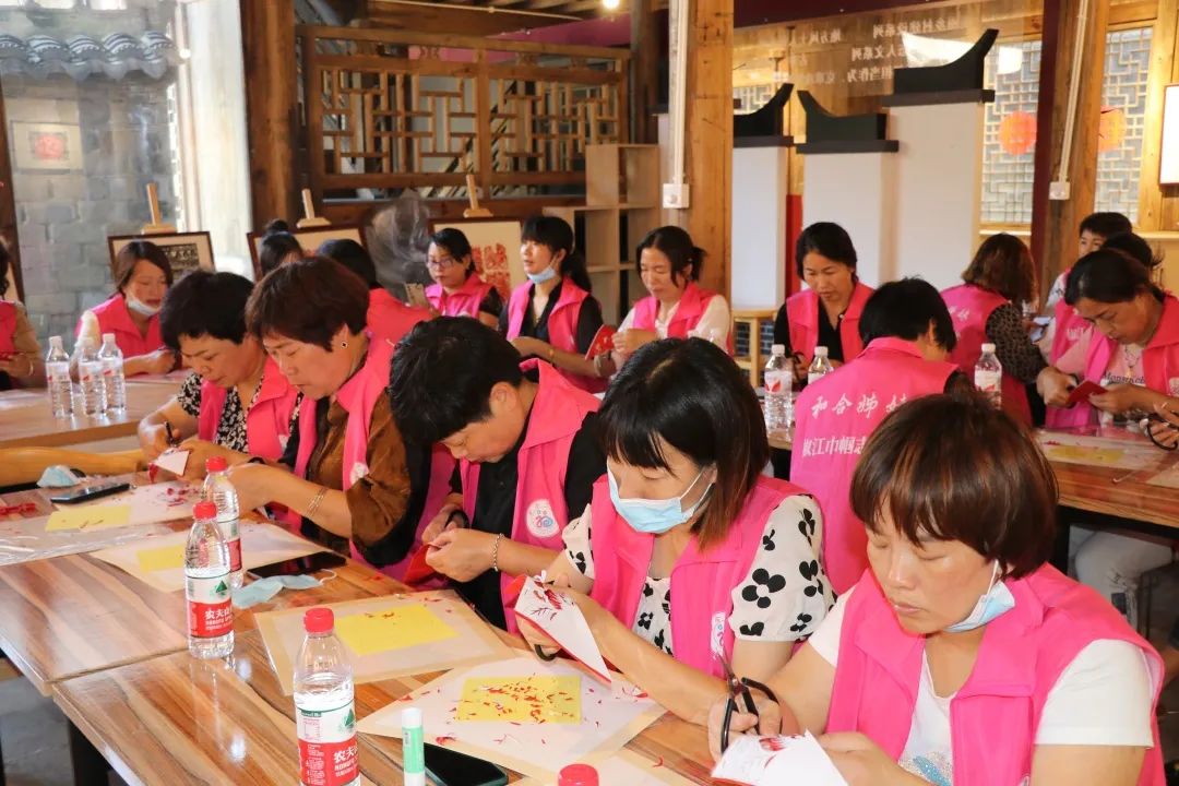 为贯彻落实习近平总书记重要讲话精神和党中央关于“疫情要防住、经济要稳住、发展要安全”的明确要求,根据全国和省、市妇联“巾帼心向党 喜迎二十大”群众性主题宣传教育活动要求,椒江区妇联组织开展“巾帼心向党 喜迎二十大——我奋斗 家国美”系列活动,讲好领袖故事、讲好奋斗故事、讲好家庭故事、讲好美好生活故事。 红歌共唱颂党恩 和合姊妹学家风 三八红旗手话初心 亲子诵读传家风 洪家街道妇联在港湾社区儿童之家开展“巾帼心向党 喜迎二十大·我奋斗 家国美——亲子诵读传家风”活动。现场邀请家长和小朋友观看了《我的国、我的家》的小视频,邀请各组家庭来诵读优良家风家训故事,让良好家风家训在生活中传递蔓延,形成家家弘扬美德、人人构筑“中国梦”的良好社会风气。 下陈街道妇联开展“巾帼心向党 喜迎二十大· 我奋斗 家国美——女企业家话共富”活动,带领辖区2022届大学毕业生、待就业女性前往耐拓机电科技股份有限公司参观考察。公司董事长洪萍为大学生分享人生经历、创业经历并介绍企业发展前景及规划,并就大学生从校园走向社会提出建议,希望她们能够发挥女性独有优势,养成终生学习习惯,知行合一。现场专门设置招聘会,为毕业生、待就业女性提供多个工作岗位,提高就业率,做好就业保障。 巾帼网格员筑平安 前所街道妇联举行“巾帼心向党 喜迎二十大· 我奋斗 家国美——巾帼网格员筑平安”活动。现场通过“方言三句半”这种生动活泼、接地气的宣传形式,用这种通俗易懂的“土话土语”,鼓舞广大妇女群众在经济社会发展中创造新业绩,在弘扬和谐风尚中开启新篇章。 少数民族妇女剪纸忆党情 大陈镇妇联举行“巾帼心向党 喜迎二十大·我奋斗 家国美——大陈渔嫂续垦荒”活动。垦二代“大陈渔嫂”、红色讲解员黄文英,为大陈镇妇女代表开展垦荒精神宣讲,大陈渔嫂大鼓队、腰鼓队在大陈镇梅花湾村文化礼堂开展庆“七一”文艺表演活动,表达对党诚挚祝福。 下阶段,椒江区妇联将继续发挥妇联引领、联系、服务妇女群众的积极作用,围绕妇女群众所需所求,创新活动形式,开展群众喜闻乐见的“巾帼心向党 喜迎二十大”群众主题宣传教育活动,增强妇女群众对习近平新时代中国特色社会主义思想的政治认同、思想认同、情感认同,为党的二十大胜利召开贡献巾帼力量!海门街道妇联举办“巾帼心向党 喜迎二十大·我奋斗 家国美——红歌共唱颂党恩”活动。现场,在红歌传唱中重温了党的光辉历史,激发了妇女群众爱党爱国的热情,让广大妇女群众对党史有更深入的理解和体会,进一步激发广大妇女群众的理想信念、历史责任感、使命感和荣誉感,增强党组织的凝聚力和战斗力。
