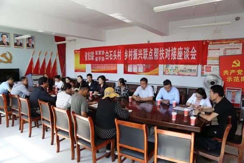 在联点帮扶对接座谈会上,省家庭服务业协会、省妇女手工制品协会结合各自行业协会的优势及企业发展现状,共谋白石头村乡村振兴及产业发展帮扶措施和方向。并从青绣手工技能培训、家政服务劳务合作及组织化、规范化等方面进行了沟通对接,开启了乡村振兴结对帮扶的良好局面。