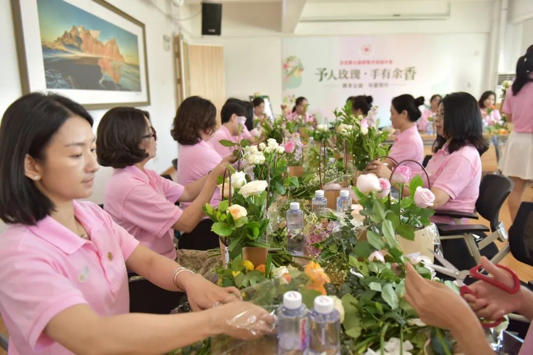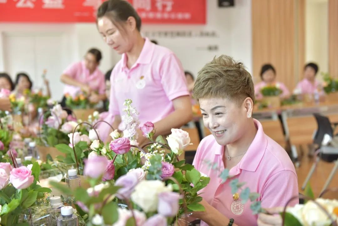 7月8日下午,福建泉州石狮市女企联公益部举办“予人玫瑰,手有余香”主题沙龙活动。本次活动共有40余名女企联会员踊跃报名参加,石狮市妇联主席邱亚环、石狮市女企联会长吴秋红等领导参加本次活动。 01悦读一本好书 姐妹共同进步 #当“公益读书会”遇见女企公益活动# 石狮市妇女援助中心工作人员蔡姝颖为姐妹们分享书籍《公益原理》,她从做公益的意义、女性做公益的优势、公益不仅只是捐款,还可以用爱的方式帮助他人等,并为以后在公益路上可能遇到的问题答疑解惑,指点迷津。 读书现场 02一场美学修行 一次灵魂旅行 艺术插花,在石狮市女企联文宣部黄彩妮姐妹的温馨讲解和指导下,姐妹们共同体验了插花艺术之旅,品一缕花香于花香四溢中放松身心,享花一般的美好生活梦想…… 03“益”起传递美好 一起向阳生长 予人玫瑰·手有余香 姐妹们将自己亲手插的一束花和一张温馨寄语的手写卡片,通过现场抽签的形式随机赠给她人。现场气氛热烈,大家亲密互动,温情四溢。 姐妹交流·共话成长 有趣的插花、赠花,让优秀的女企业家们尽情地放飞她们的美好生活与想象力。在活动中,姐妹们不仅收获了公益知识与插花技艺,还收获了彼此交流的美好心情和适时慢生活的艺术情调,还透过一张张卡片传递着美好的祝福。