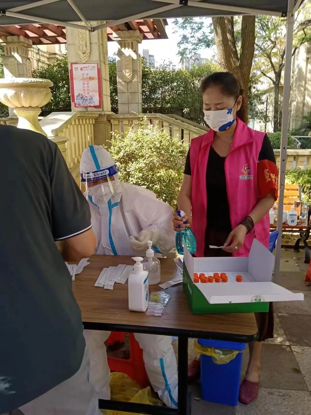 巾帼志愿者协会第一时间招募志愿者,随时待命,在社区核酸检测点维持秩序、现场引导,上门发放通行证。