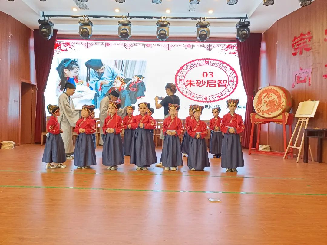 开蒙礼,是中国的传统文化礼仪之一,是学龄儿童入学之前的启蒙礼仪,也是古代启蒙教育之初举行的“拜师礼”。近日,浙江省湖州市长兴县各级妇联开展“入学开蒙礼”活动,让孩子读书明理,启发心智,上好“人生第一课”。 先正衣冠,后明事理 “礼义之始,在于正容体。”让孩子体验礼仪从端正容貌和服饰开始。一个有良好修养的人,体态端正、服饰整洁、表情庄敬、言辞得体。孩子们自己动手整理衣容,在老师的帮助下很快变得"衣冠楚楚"。 行拜师礼,学会感恩 学拜孔子是中国传统私塾教育入学的礼教行为,学童入学前要三拜孔圣人、拜老师,以示今后尊师重道,培养良好的行为习惯和道德品质。行三礼即为:一拜父母养育之恩,二拜老师辛勤教育,三拜同学岁月同窗。 朱砂启智,开启智慧之门 一点朱砂入心房,心明眼亮开吉祥;妙笔诗书传家久,状元及第花满堂……在古代,学童入学前,都会有启蒙师长用朱砂在额头正中点上红痣,寓意眼明心明,开启智慧。老师们俯下身在孩子们的额头正中间,点上一个圆圆的红印,并鼓励孩子们好好学习,做个好孩子! 学童诵读,明礼明志 “弟子规,圣人训,首孝悌,次谨信……”伴随着优雅的歌声,孩子们用稚嫩的声音,齐诵《弟子规》选段。三字一句,朗朗上口,引导孩子们了解古人在家、出门、待人接物和求学的各种礼仪,从而对照自己,以此读书明礼明志。 开笔破蒙,人生始立 “一笔推开万事新”,一撇一捺一个“人”。孩子们用毛笔写下人生中简单而意义深远的“人”字,寄寓着读书是为了做“人”。老师们为孩子致辞,鼓励孩子们好读书、读好书,学做人,做个对社会有用的人,做个堂堂正正的人。 击鼓明志,赠智慧礼 一鼓,爱国爱党;二鼓,立德修身;三鼓,学而不厌。击鼓三声以示从今开启读书之事。活动现场,为每位孩子精心准备了一份学前礼品,寄托着一个个美好的人生祝愿。 茫茫寰宇,悠悠华夏,人文荟萃,至圣云芳。在仪式中感受中华美德,在参与中接受传统熏陶。良好的开端是奠定成功的基础,开蒙礼为孩子们提供与传统文化近距离接触的平台,启发懵懂的孩童与中国古代传统⽂化进⾏了⼀次“亲密接触”,并通过仪式感的熏陶为他们幼小的心灵,播下了一颗尊敬师长、潜心向学的种子。