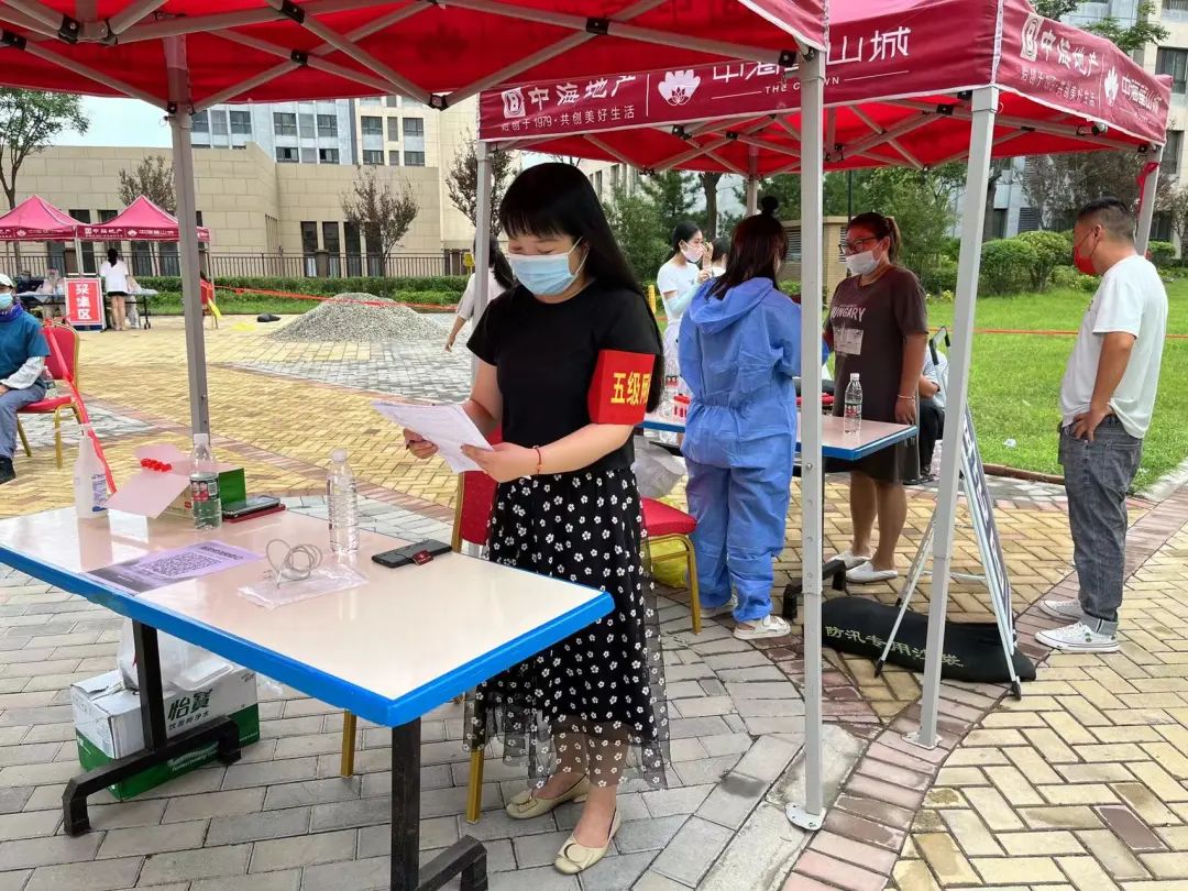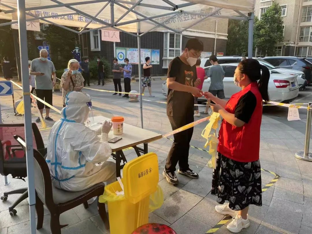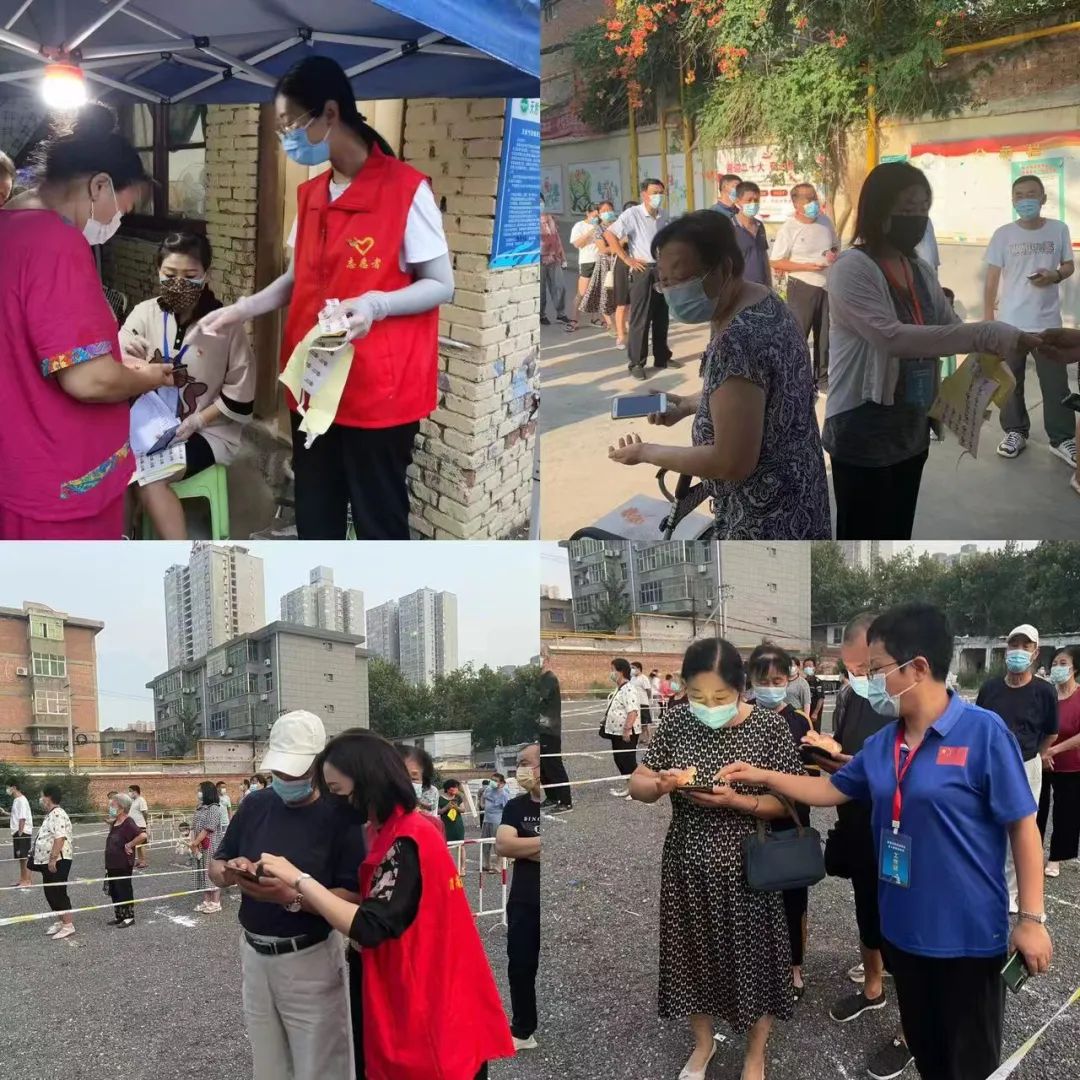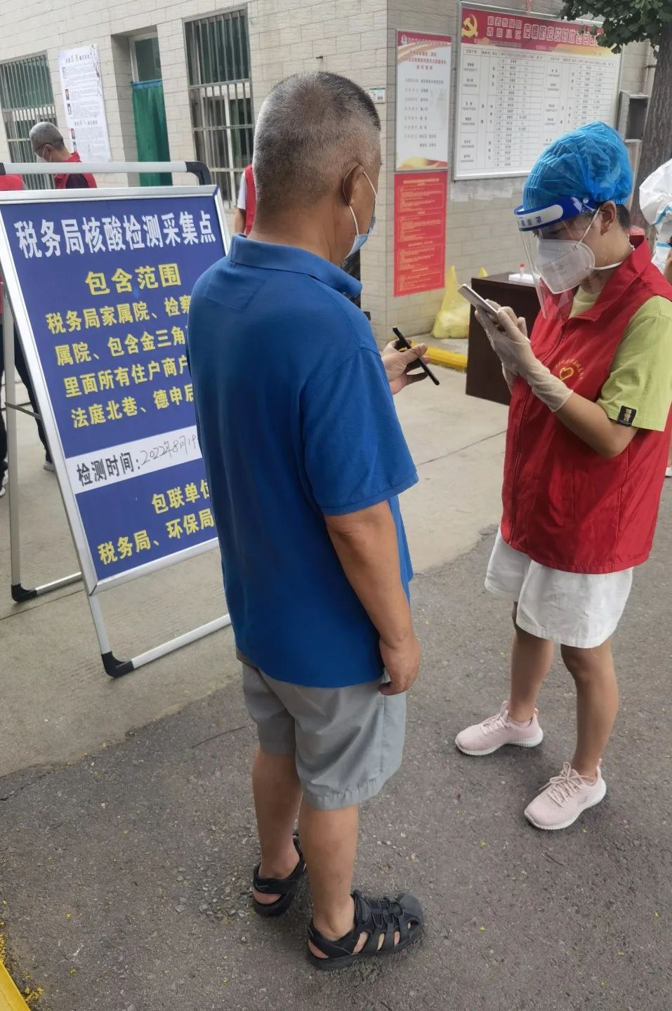 市税务局各基层党支部巾帼志愿者们在辖区内协助医护人员做好核酸检测工作。