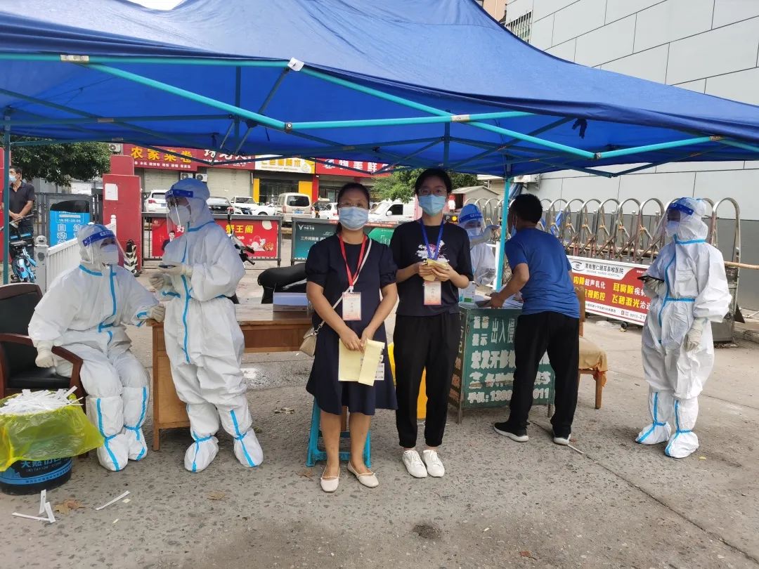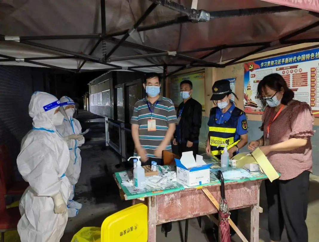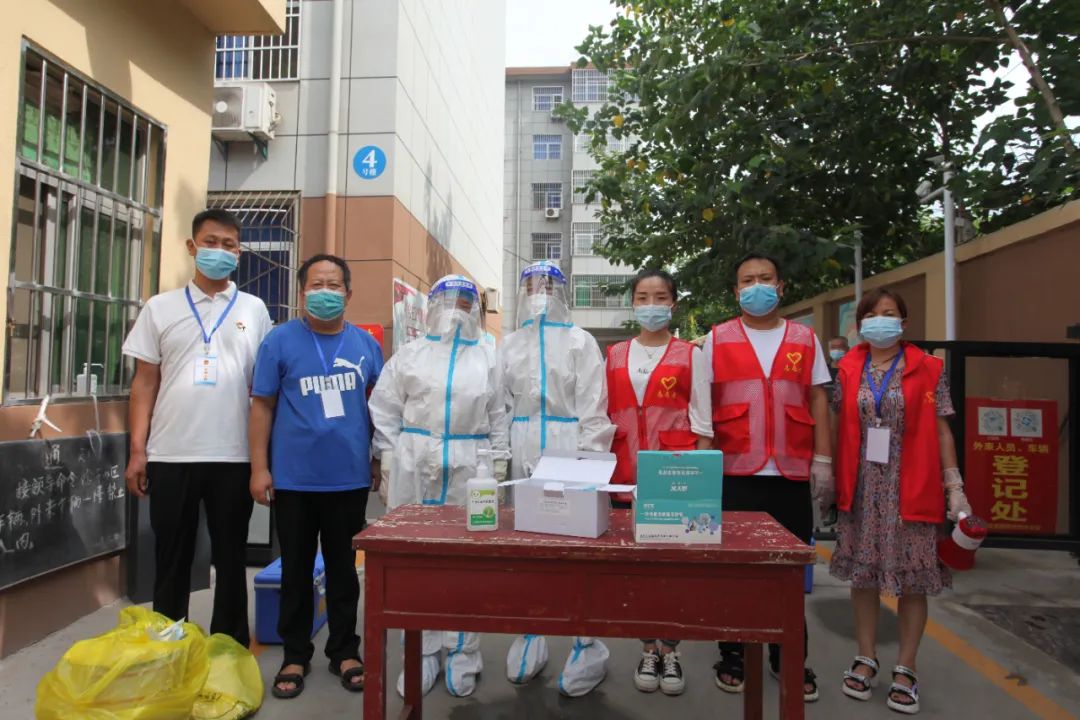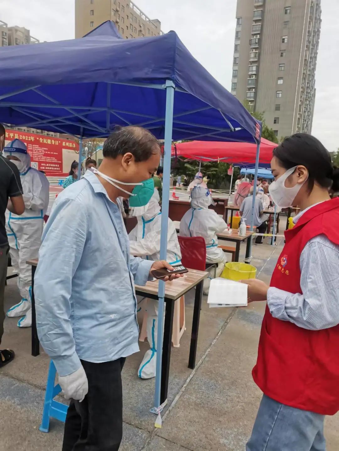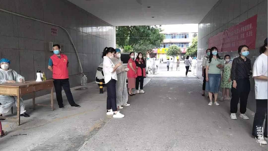 市税务局各基层党支部巾帼志愿者们在辖区内协助医护人员做好核酸检测工作。