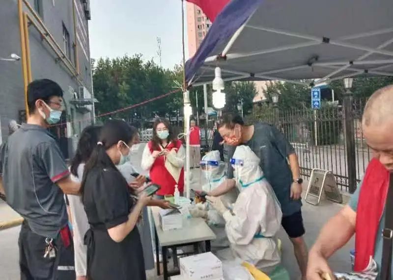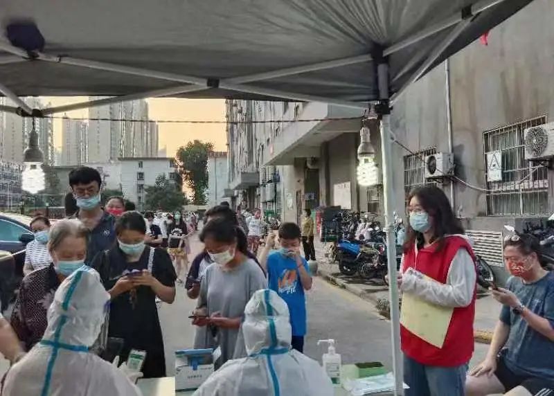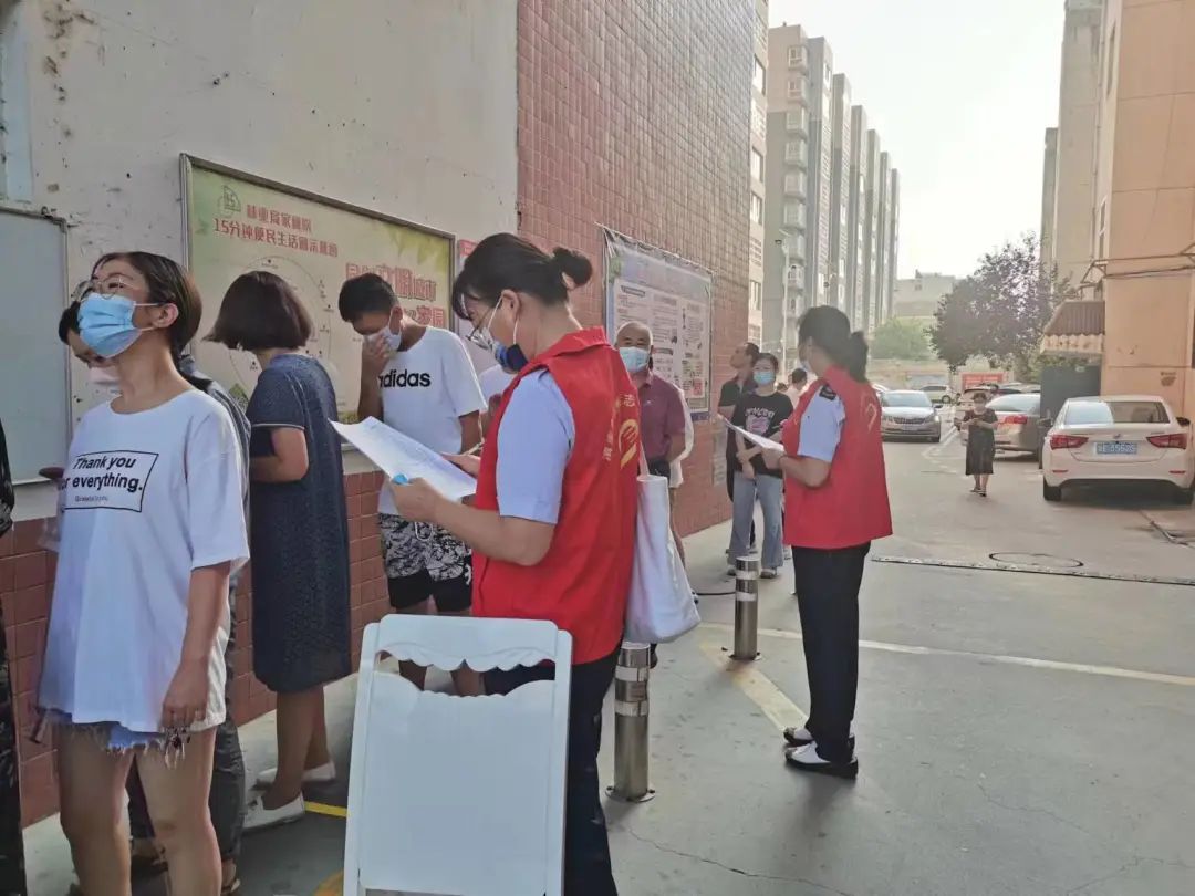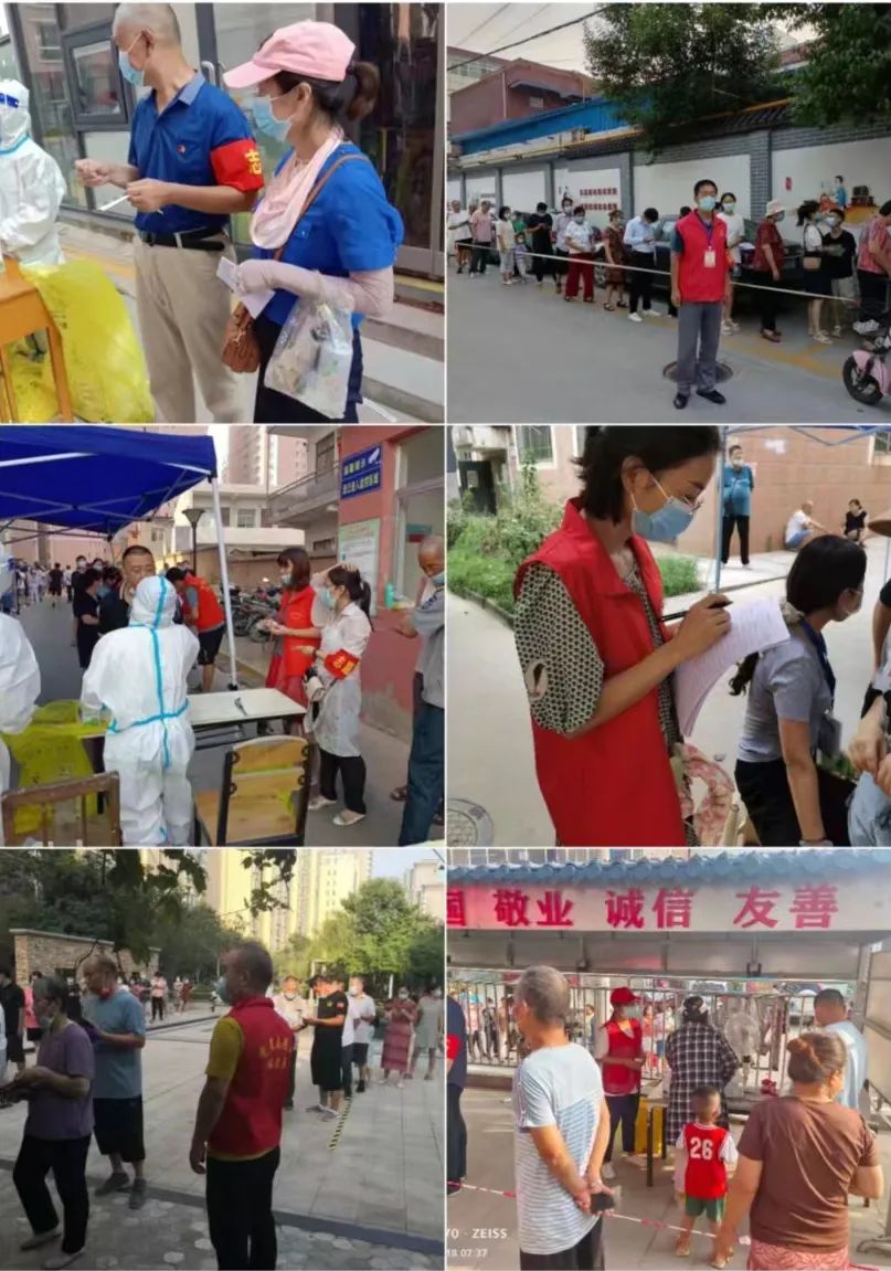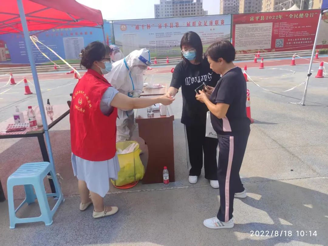 富平县妇联全体党员干部自8月17日首轮核酸检测开始,每日凌晨4:30起下沉到各自包联社区,配合核酸检测人员扫码、测温,发放“富庶太平”“柿柿如意”“富昌通达”贴纸, 指导居民排队、注册并登记个人信息等,为核酸检测的有序顺利进行贡献巾帼力量。