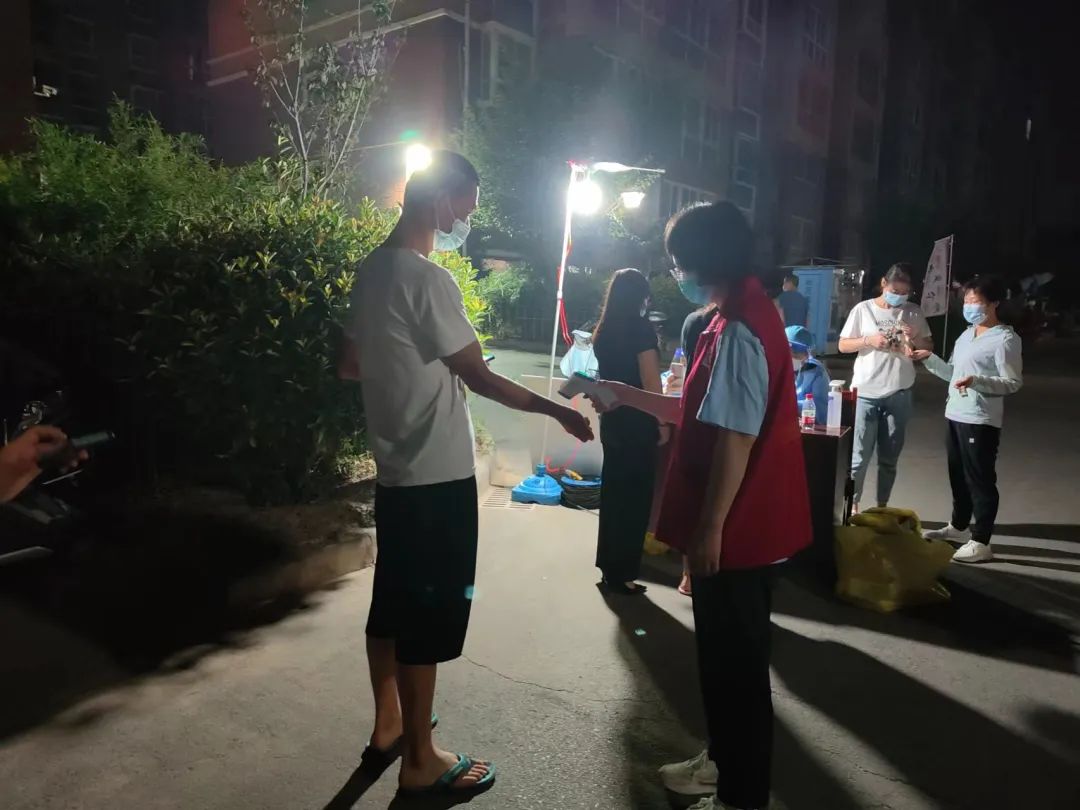 市应急局志愿者在人民街道社区、公园天下小区协助开展疫情防控工作。