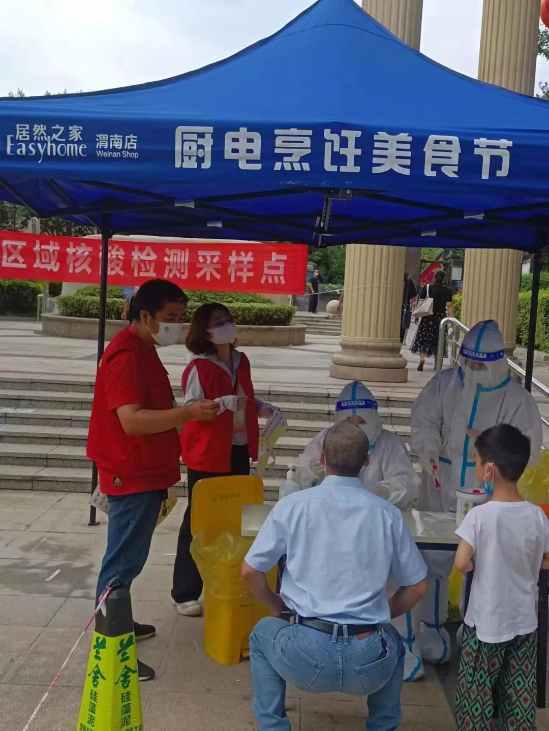 市民政局志愿者深入渭纺社区、西岳社区,配合核酸检测人员做好疫情防控工作。