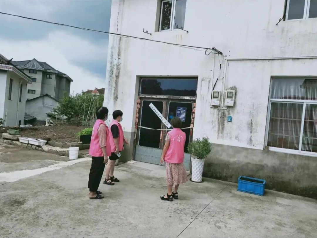 富春街道春华村妇联与村网格员并肩作战,开展“扫街行动”,戴家墩社区妇联干部和巾帼志愿者们冒雨连夜前往管控人员家中落实管控工作。