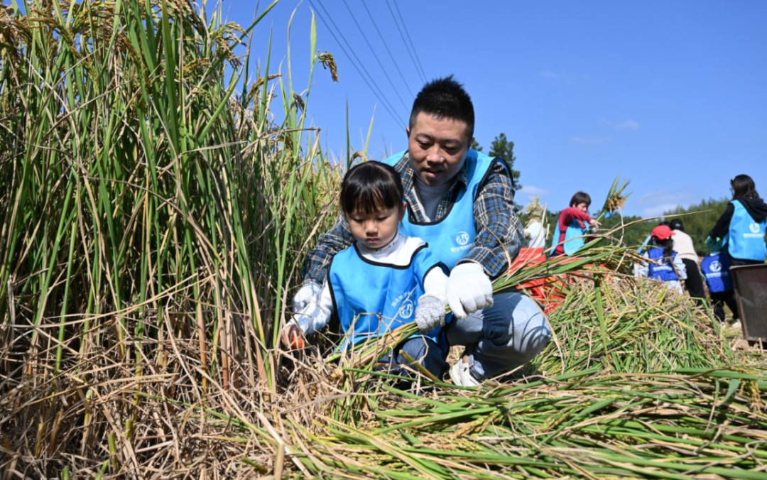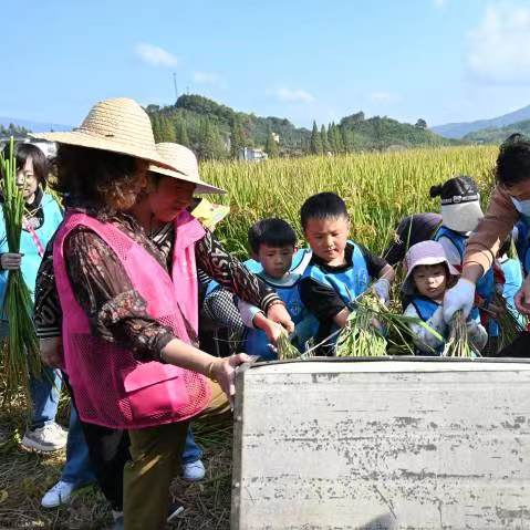 11月2日,锦北街道妇联联合关工委在龙马村共同开展了以“丰收的喜悦”为主题的“龙马稻田节”系列亲子活动,活动包含宣传粮食安全、割稻脱谷体验、稻草编制创作、打糍粑做饭团等环节。