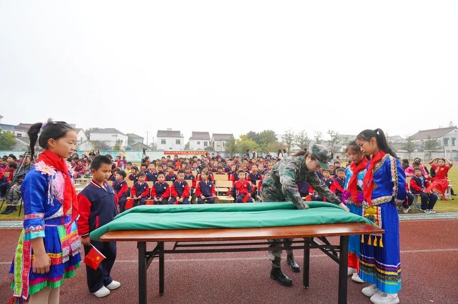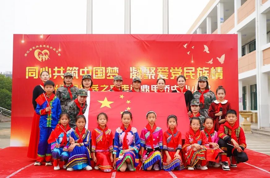 11月11日上午,一首满含深情的歌曲《我和我的祖国》在湖州市长兴县夹浦镇鼎甲桥中心小学上空回响,这是浙江省长兴县退役女兵之家创建者周映雪带领退役女兵走进校园,和孩子们在一起同声歌唱我们伟大的祖国,歌颂伟大的中国共产党。 “弘扬革命文化,传承中华优秀传统文化”,这是党的二十大对加强文化自信自强提出的要求,作为新时代退役女兵的优秀代表,周映雪时刻牢记一名共产党员的使命担当,发动退役女兵走进少数民族学生中间,讲述《半条被子》的红色经典故事,让孩子们明白共产党领导下的人民军队为穷苦大众过上好日子的牺牲和军民鱼水情深。 示范叠军被,表现出我军纪律严明、一切行动听指挥、党和人民利益高于一切的优良作风;一曲《我爱我的祖国》舞出了退役女兵的风采,舞出了民族团结一家亲的深情。鼎小少年,则敲响铿锵有力的中国鼓,唱响革命现代京剧《张家浜》选段《军民鱼水情》,以少年的良好风貌展示民族融合共向未来的美好心愿…… 传承红色基因,赓续红色血脉,长兴退役女兵将继续发扬对党忠诚、无私奉献的优良作风,为同心共筑民族复兴的中国梦贡献出自己的力量。
