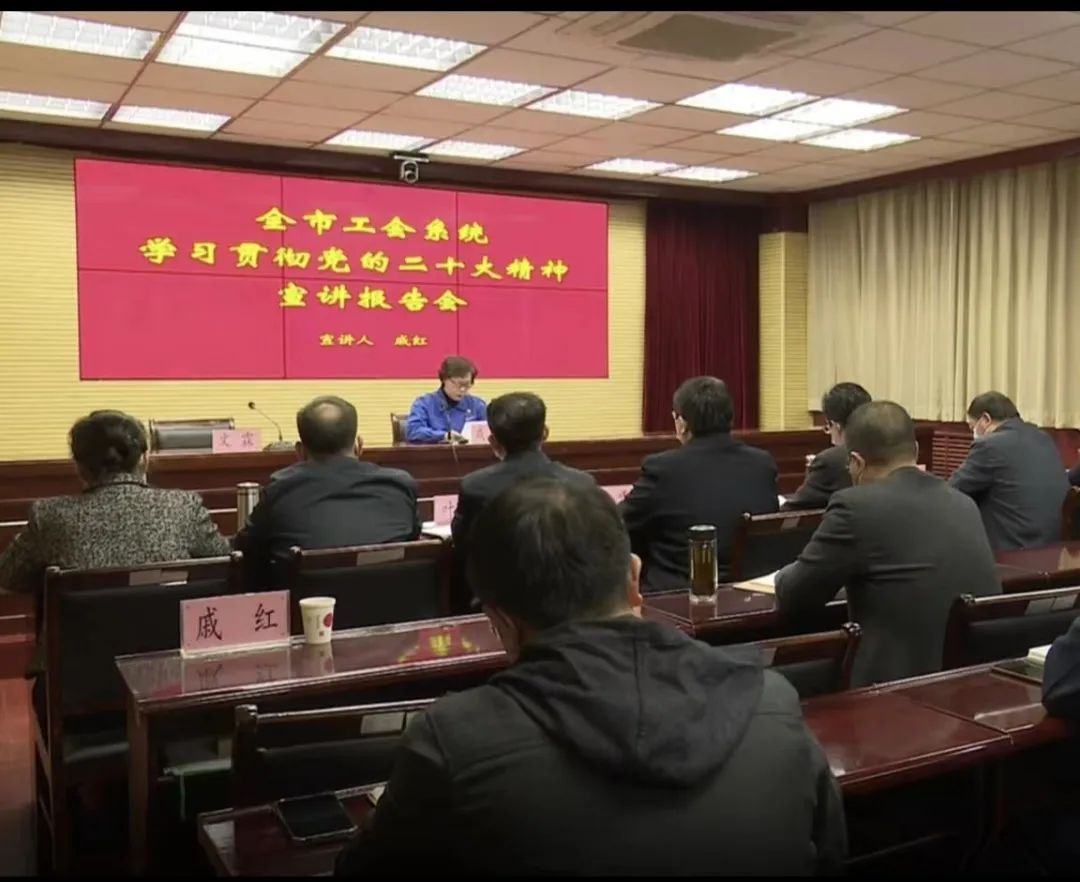 戚红近期又来到市总工会,面向工会系统开展宣讲,进一步发挥示范引领带动作用,带动更多干部职工全面、深入、系统地学习好、领会好、贯彻好党的二十大精神,推动党的二十大精神在基层落地生根。