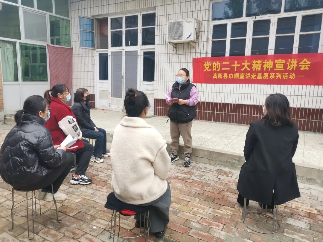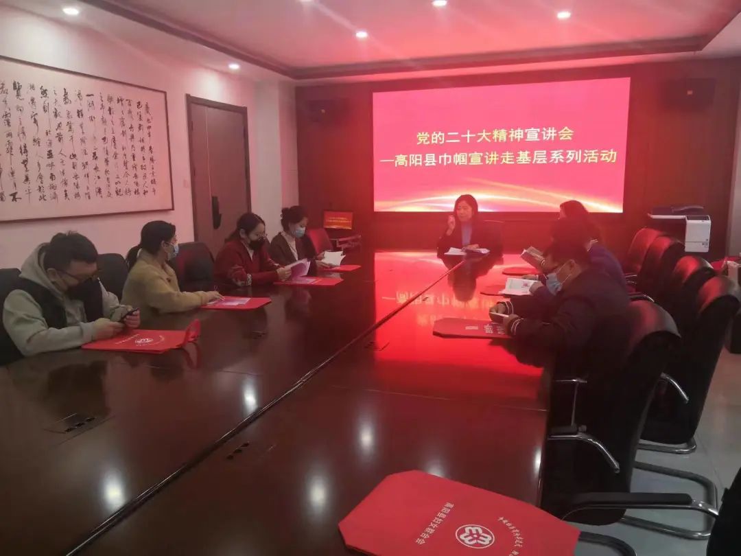 近日,河北省保定市各级妇联组织通过多种形式学习宣传贯彻党的二十大精神,通过妇联领导干部带头讲、二十大代表深入讲、妇联执委广泛讲、先进典型结合讲、组建巾帼宣讲团深入基层讲,推动党的二十大精神进机关、进企事业单位、进城乡社区、进校园、进各类新经济组织和新社会组织、进网站、进家庭,用大会确定的宏伟蓝图和光明前景凝聚妇女人心、汇聚奋进力量,带领全市妇女撸起袖子加油干,风雨无阻向前行,切实把党的二十大精神转化为推动妇女事业高质量发展的实际行动。